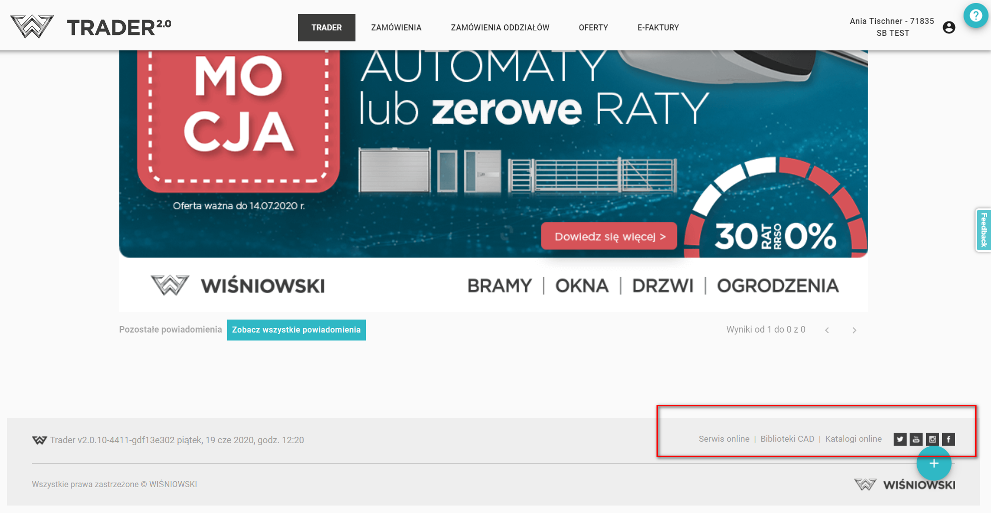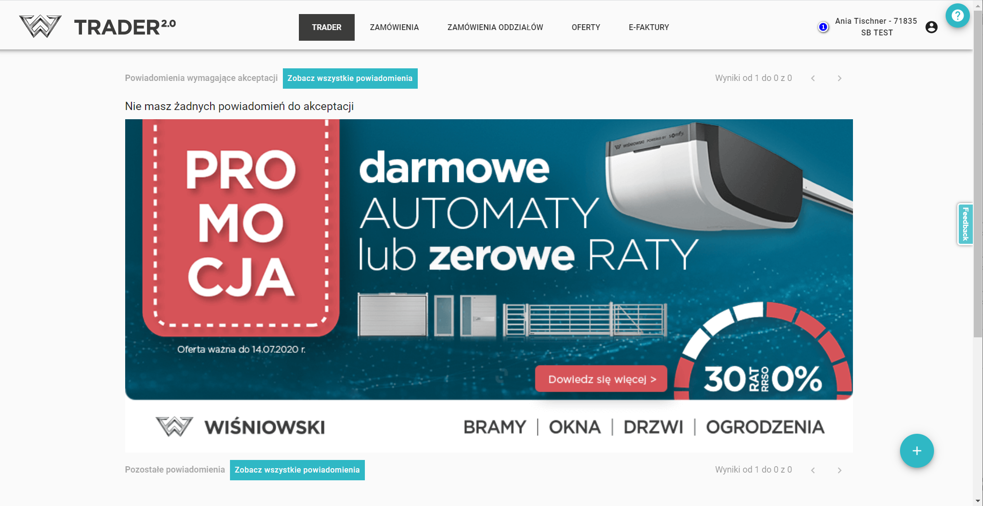 Po zalogowaniu do aplikacji wyświetlają się komunikaty i bieżące informacje zarówno na temat obecnych promocji jak i informacje na temat działania aplikacji.