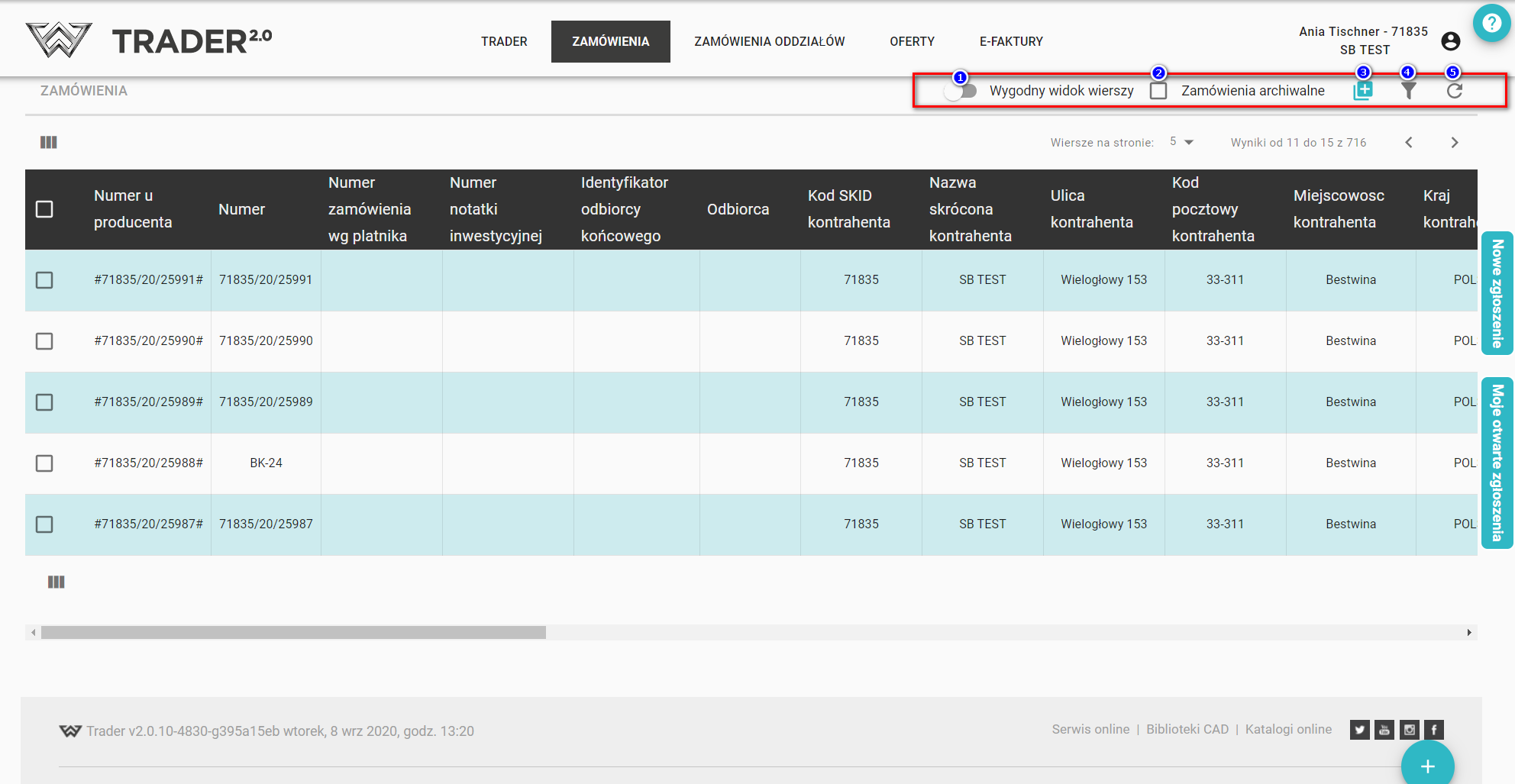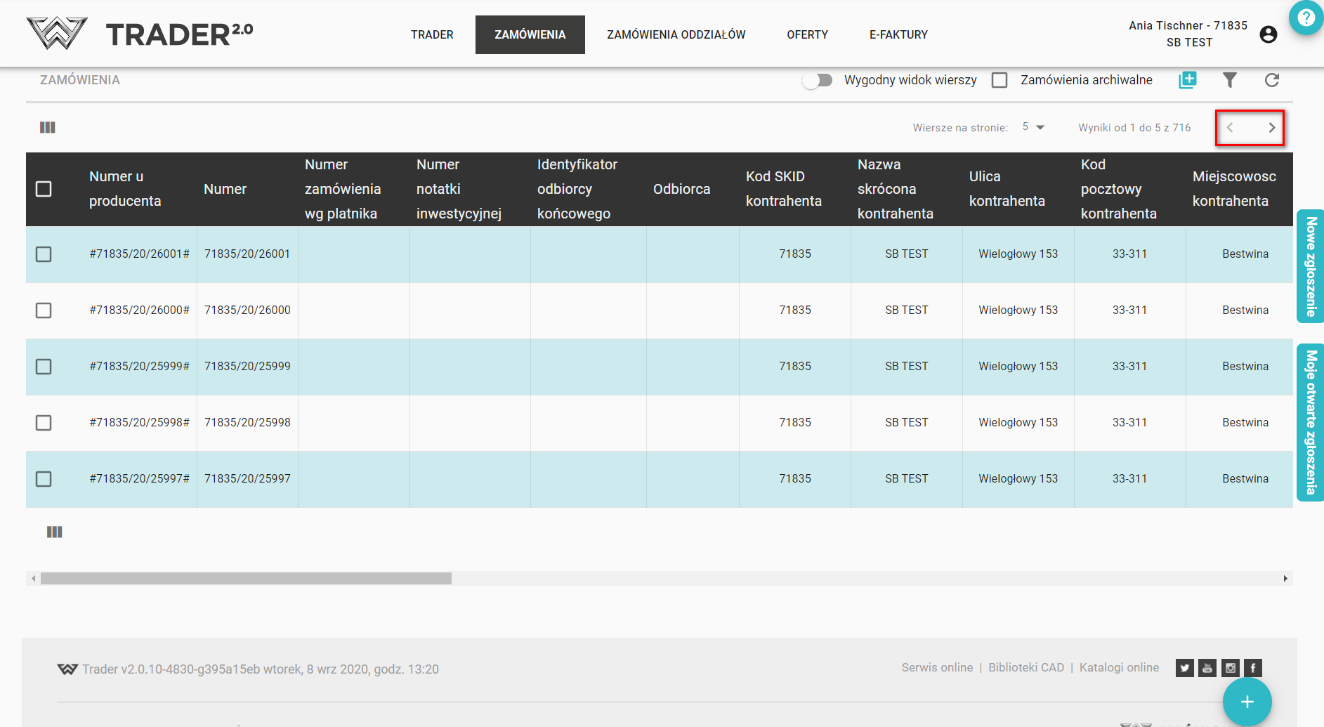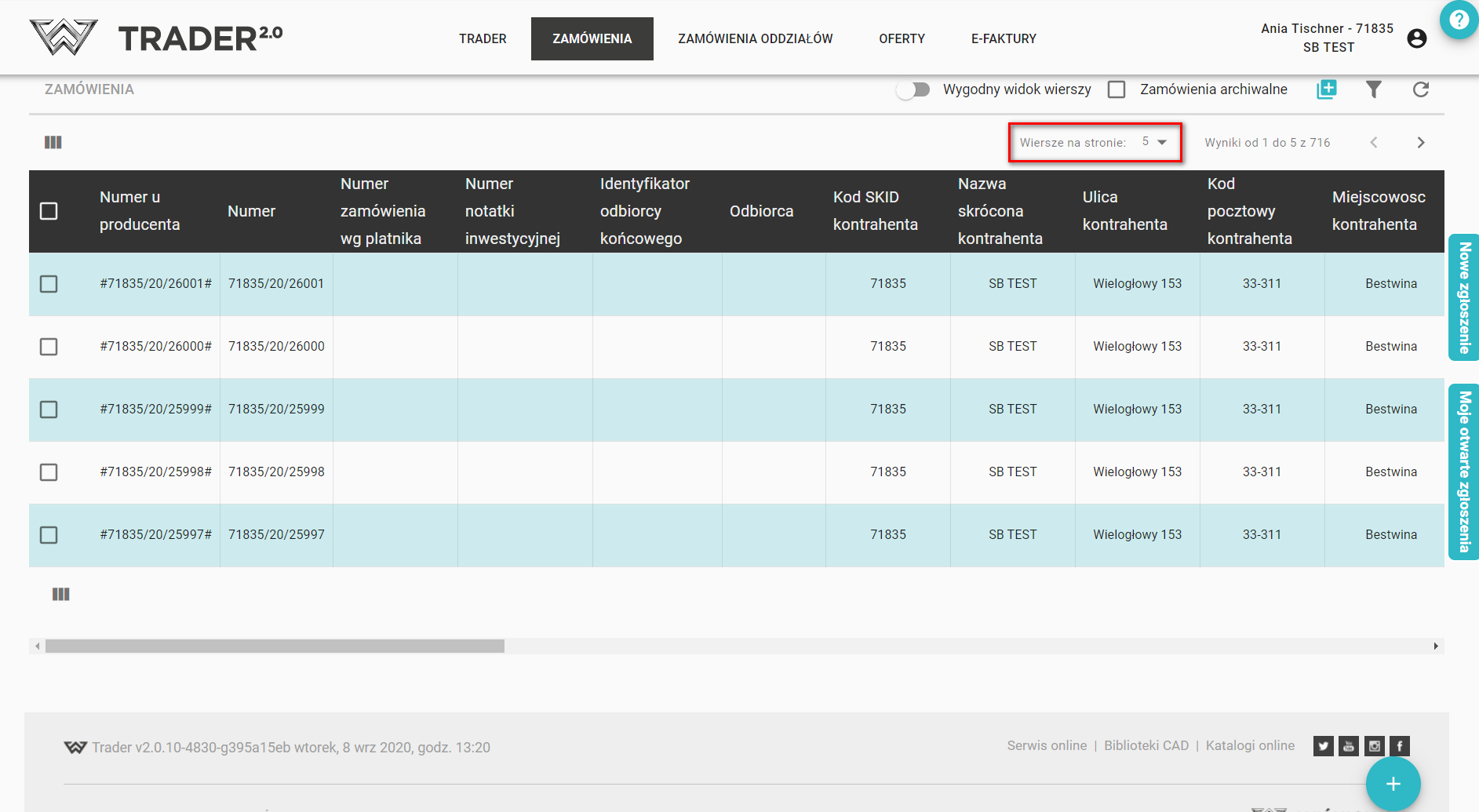 Na poszczególnych elementach np. na liście zamówień wyświetla się określona ilość rekordów.