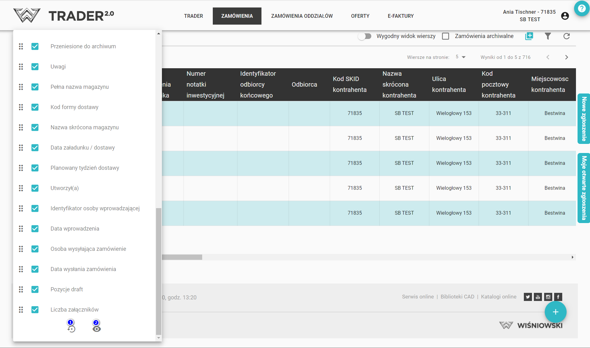 Na poszczególnych listach możemy samodzielnie ustawiać widok kolumn, np. ukryć te których nie chcemy wyświetlać. Aby to zrobić należy kliknąć ikonę