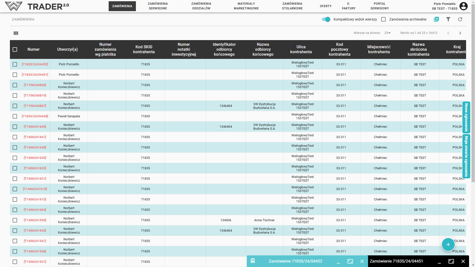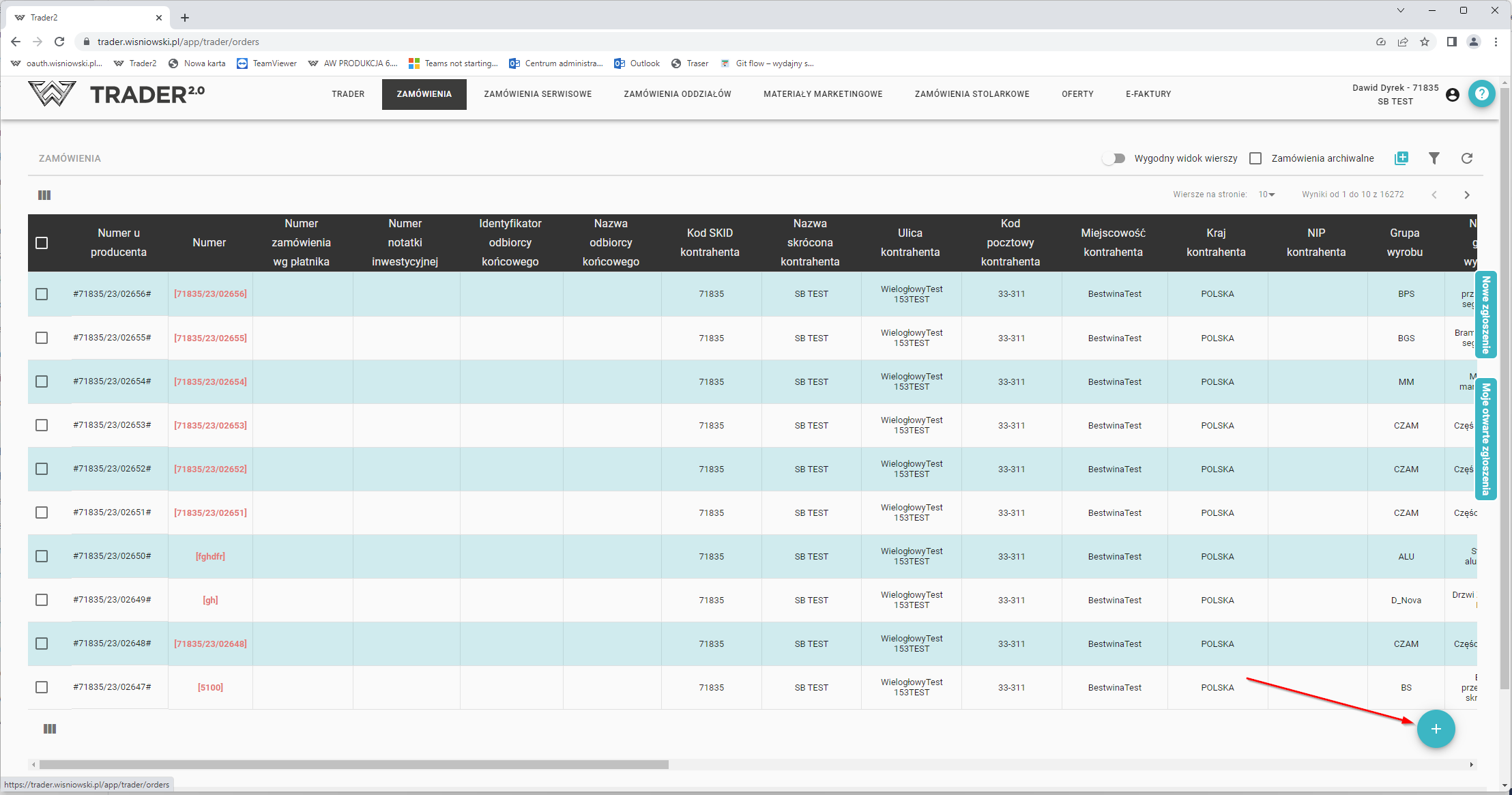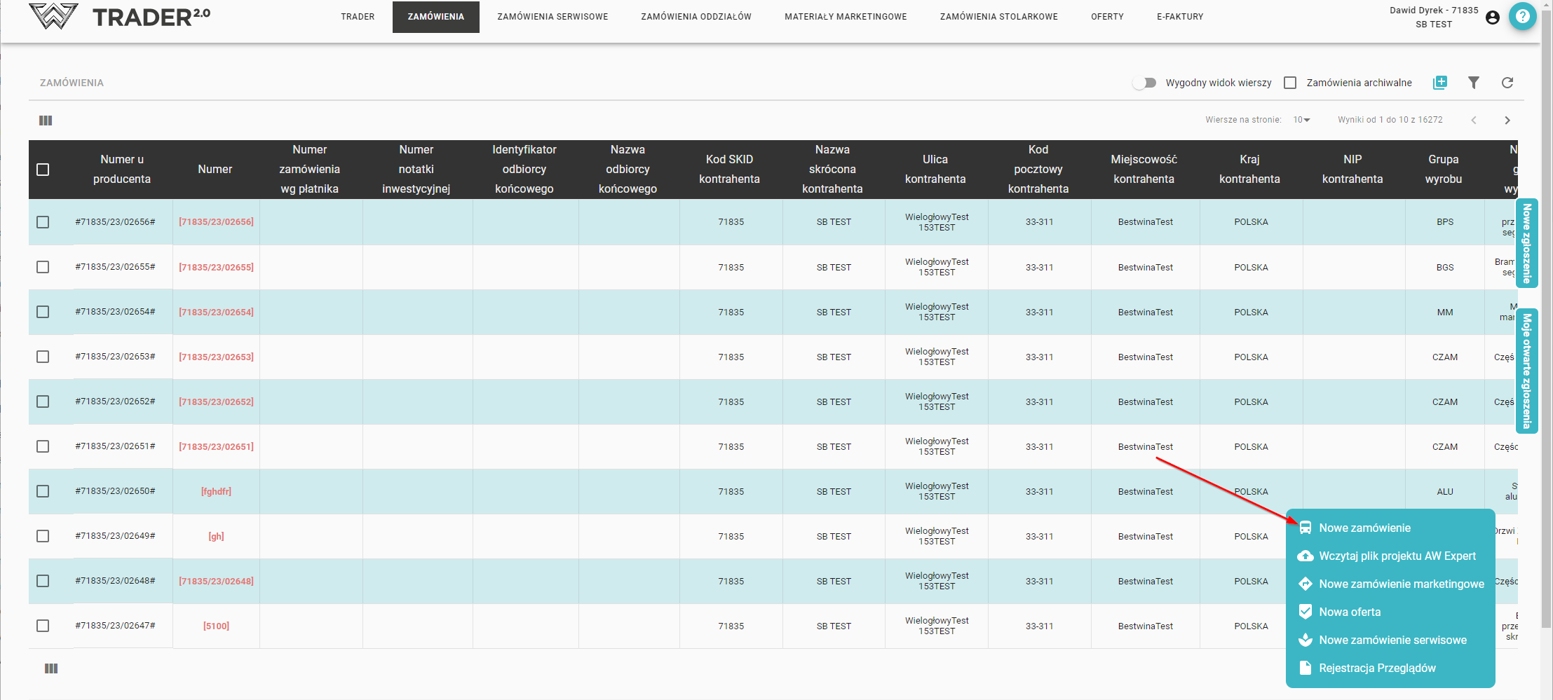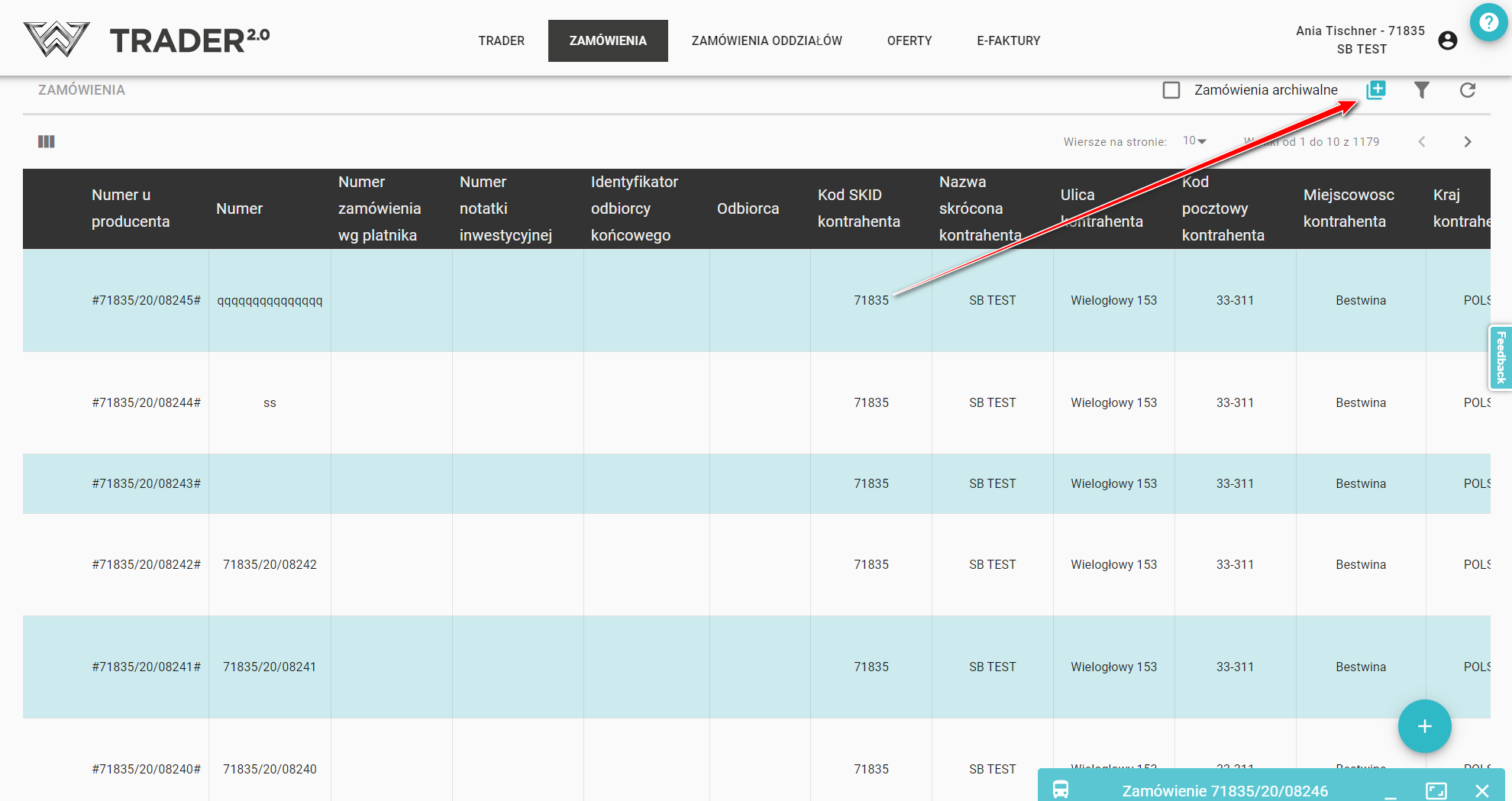 Dodatkowo wprowadzenie nowego zamówienia możliwe jest również za pomocą przycisku znajdującym się w prawym górnym rogu, nad listą zamówień.