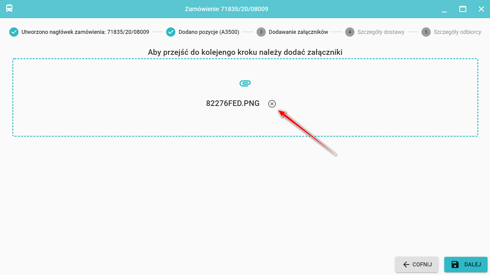 Aby usunąć załącznik kliknij obok jego nazwy.