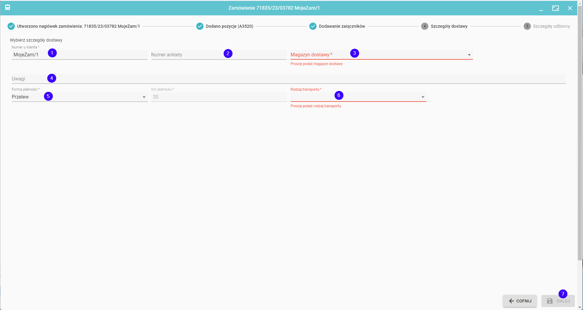 Po zdefiniowaniu szczegółów dostawy kliknij przycisk Dalej (7)