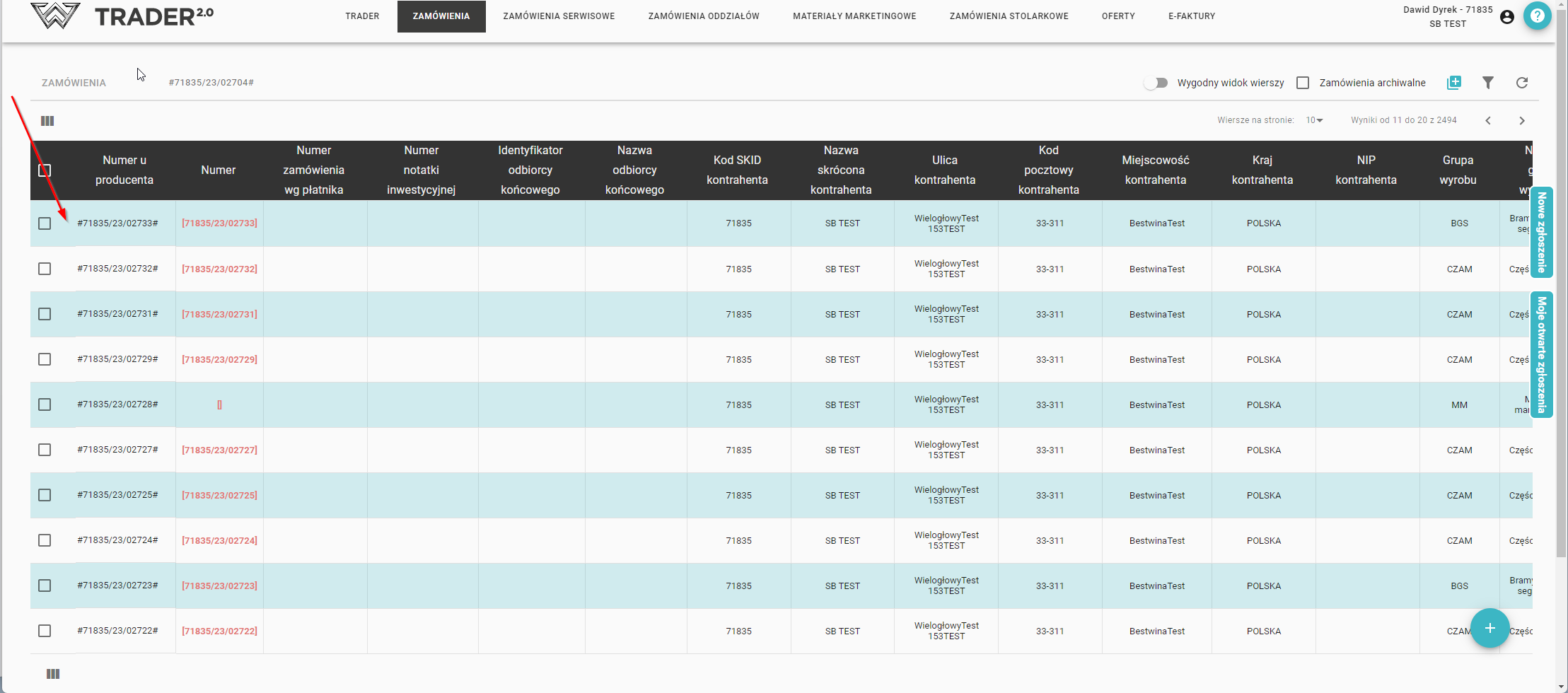 Po utworzeniu nowego zamówienia, możesz odnaleźć je na liście zamówień. Szczegóły wprowadzonego wcześniej zamówienia, zobaczysz klikając w dany wiersz na liście zamówień.
