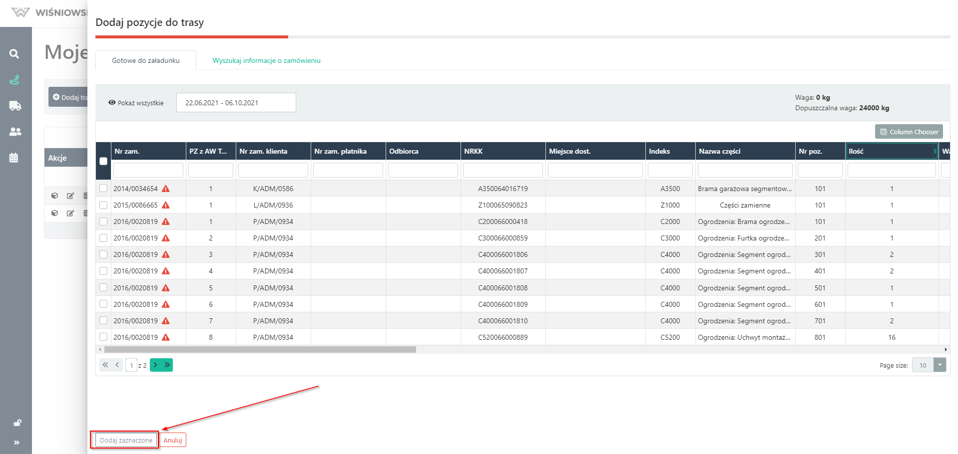 3. Wybierz z listy co najmniej jedną pozycję, zaznaczając ją w pierwszej kolumnie. Następnie kliknij "Dodaj zaznaczone".