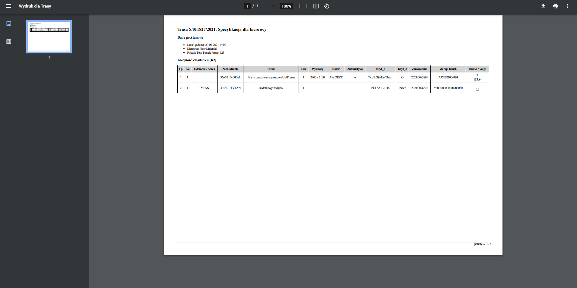 1. Kliknij szary przycisk z ikonką drukarki przy wybranej Trasie (Rys. 4).