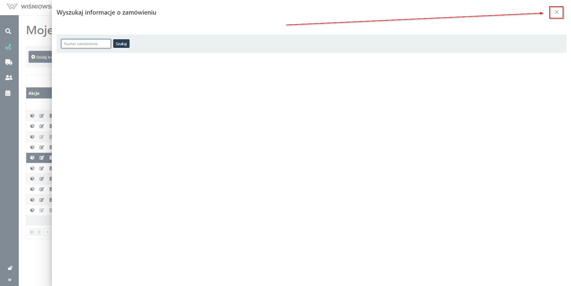 3. Jeśli chcesz zakończyć wyszukiwanie Zamówienia kliknij przycisk "X" (Rys.3.).