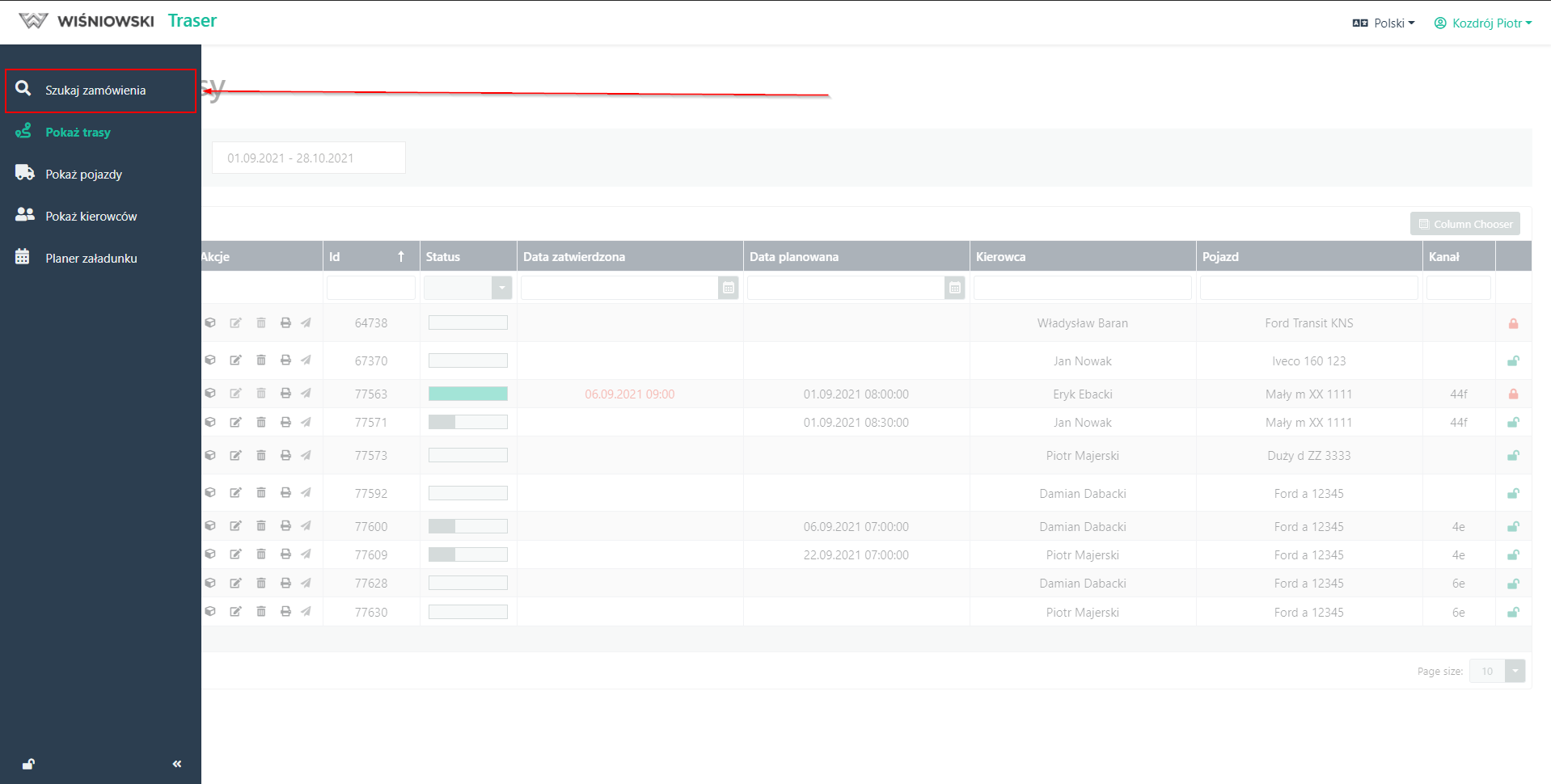 Rys. 1. Rozpoczęcie wyszukiwania zamówienia.