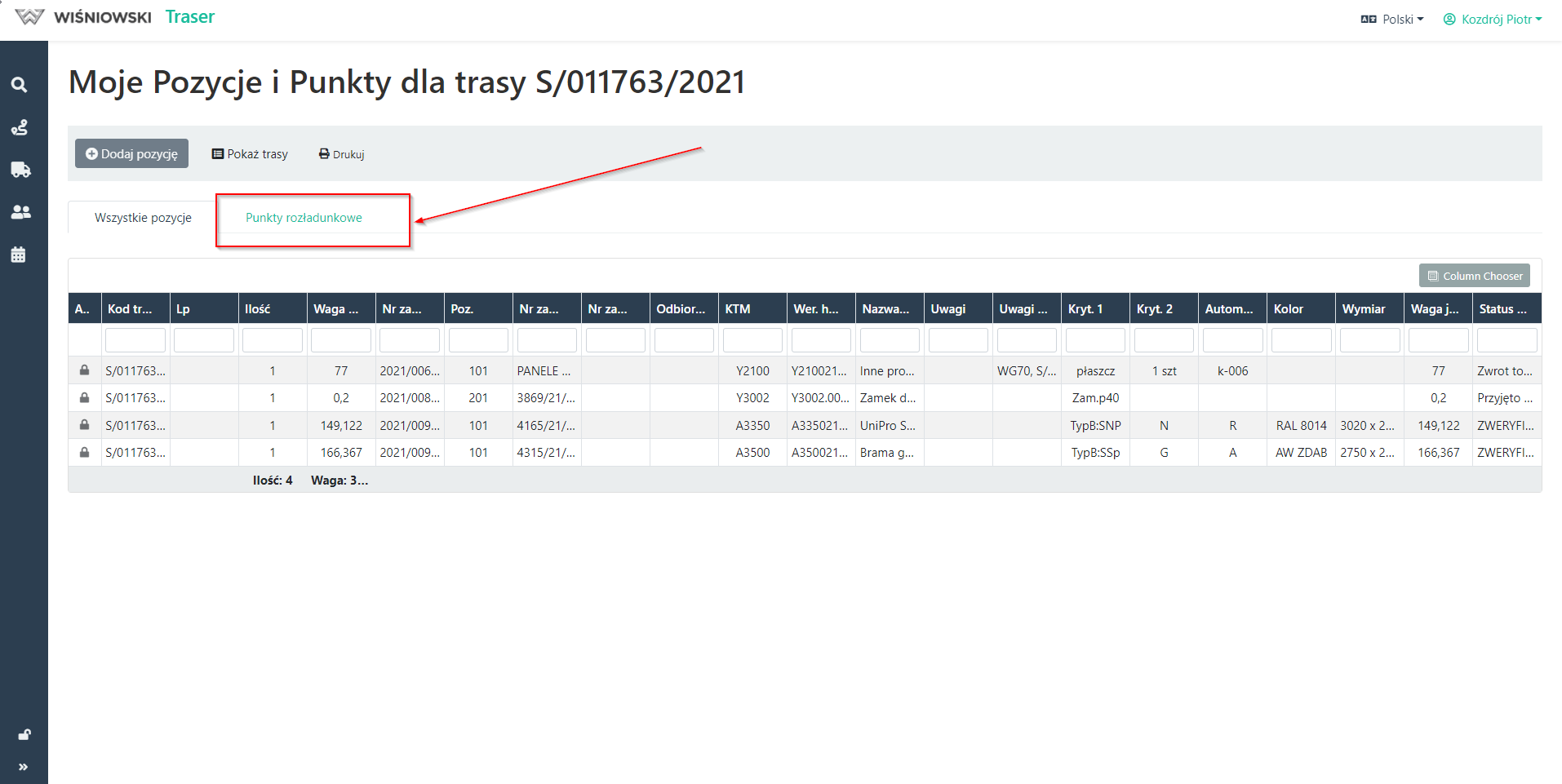 2. Wybierz zakładkę: Punkty Rozładunkowe (Rys. 2.).