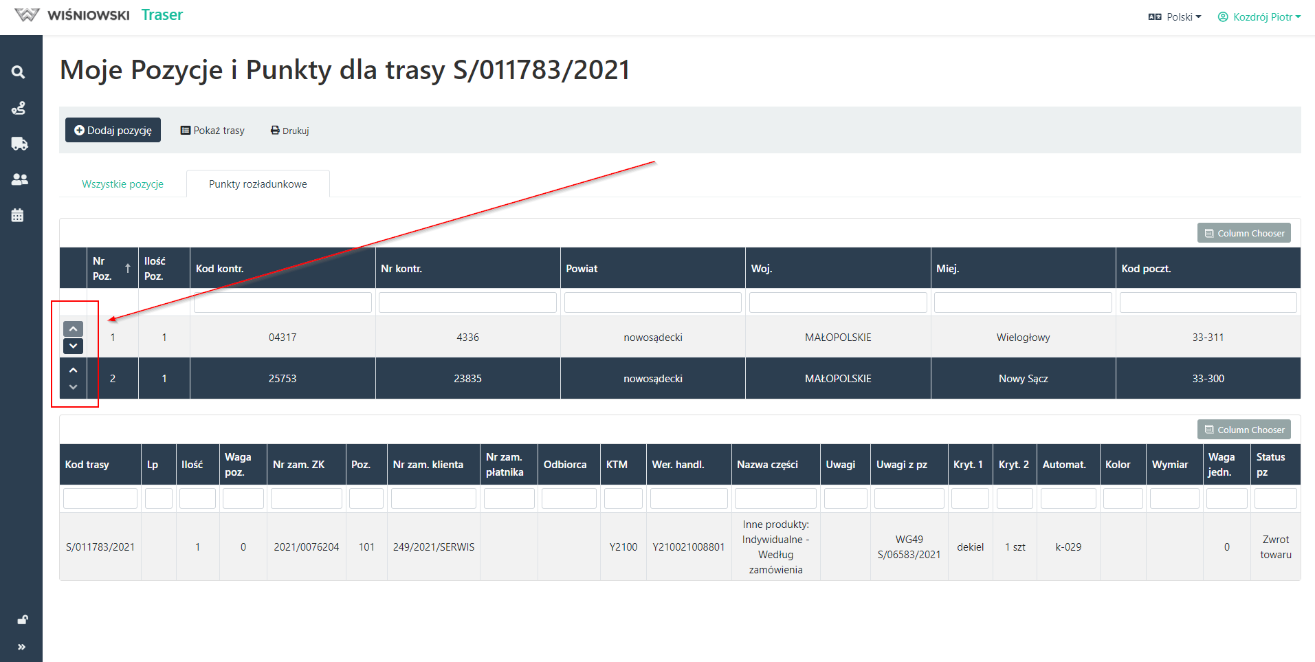 Rys. 3. Dostosowanie kolejności Punktów Rozładunkowych.
