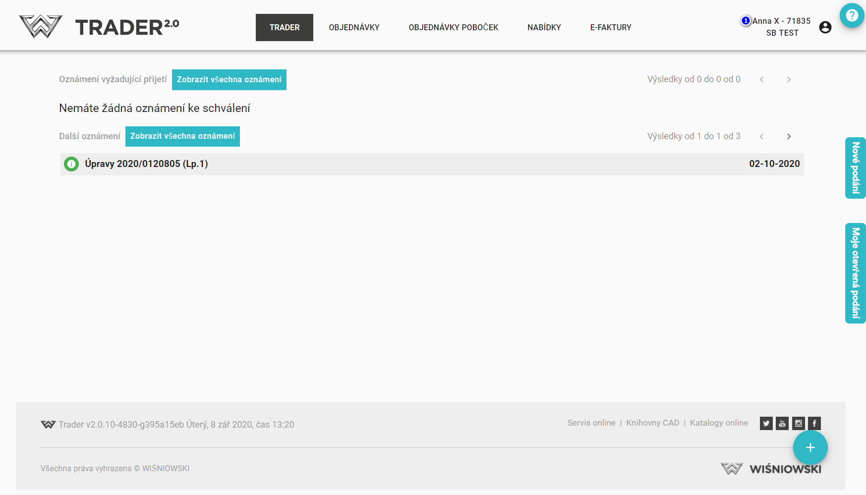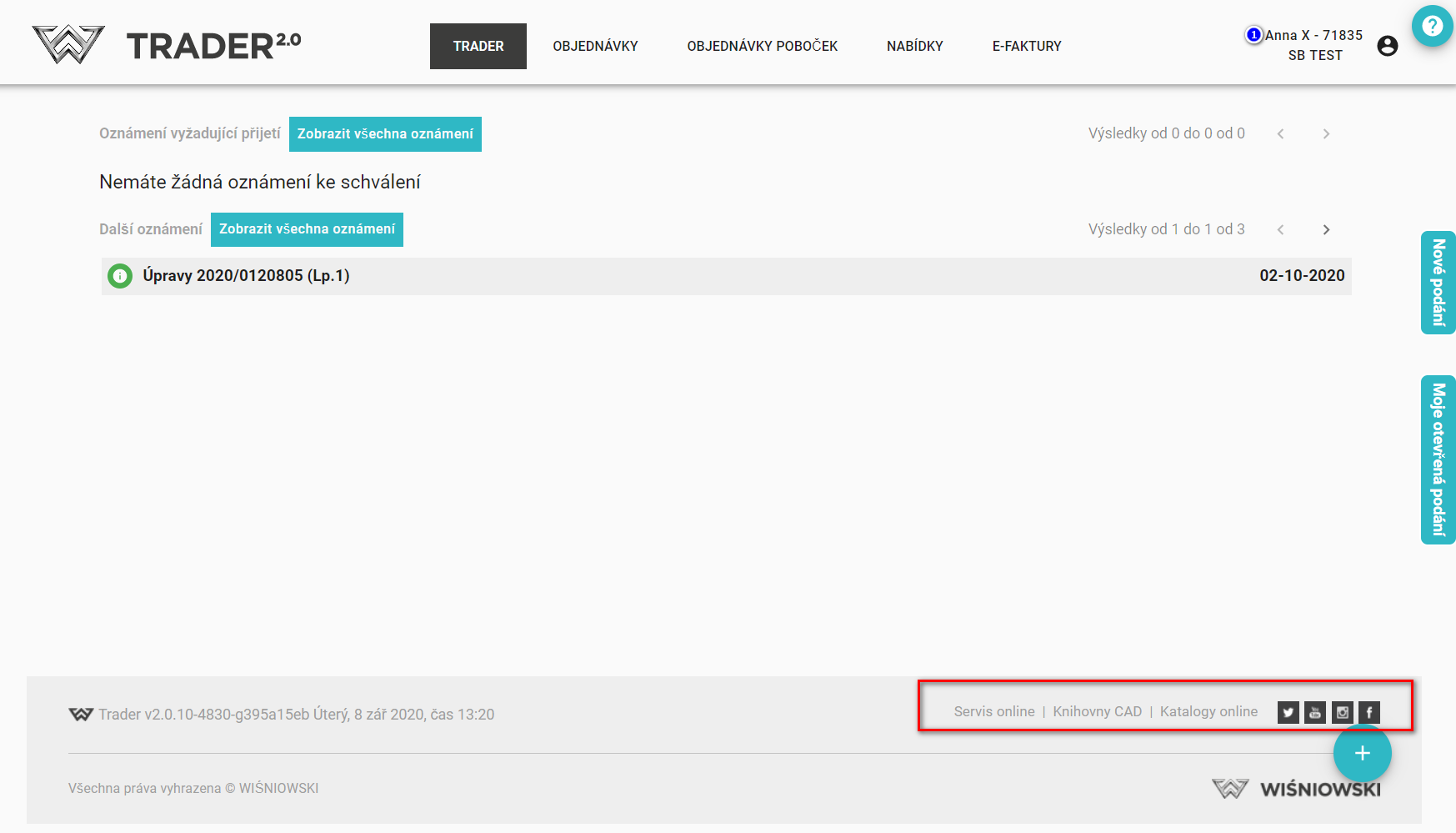 Okamžitě také vidíme, ke které společnosti jsme přihlášeni a který uživatel je přihlášen (1), stejně jako zpřístupněné informace a zprávy.