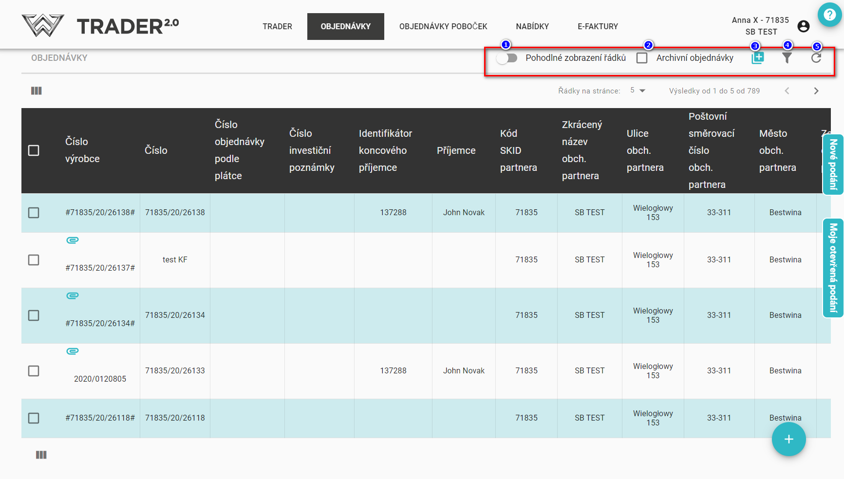 - možnost obnovení seznamu (5).