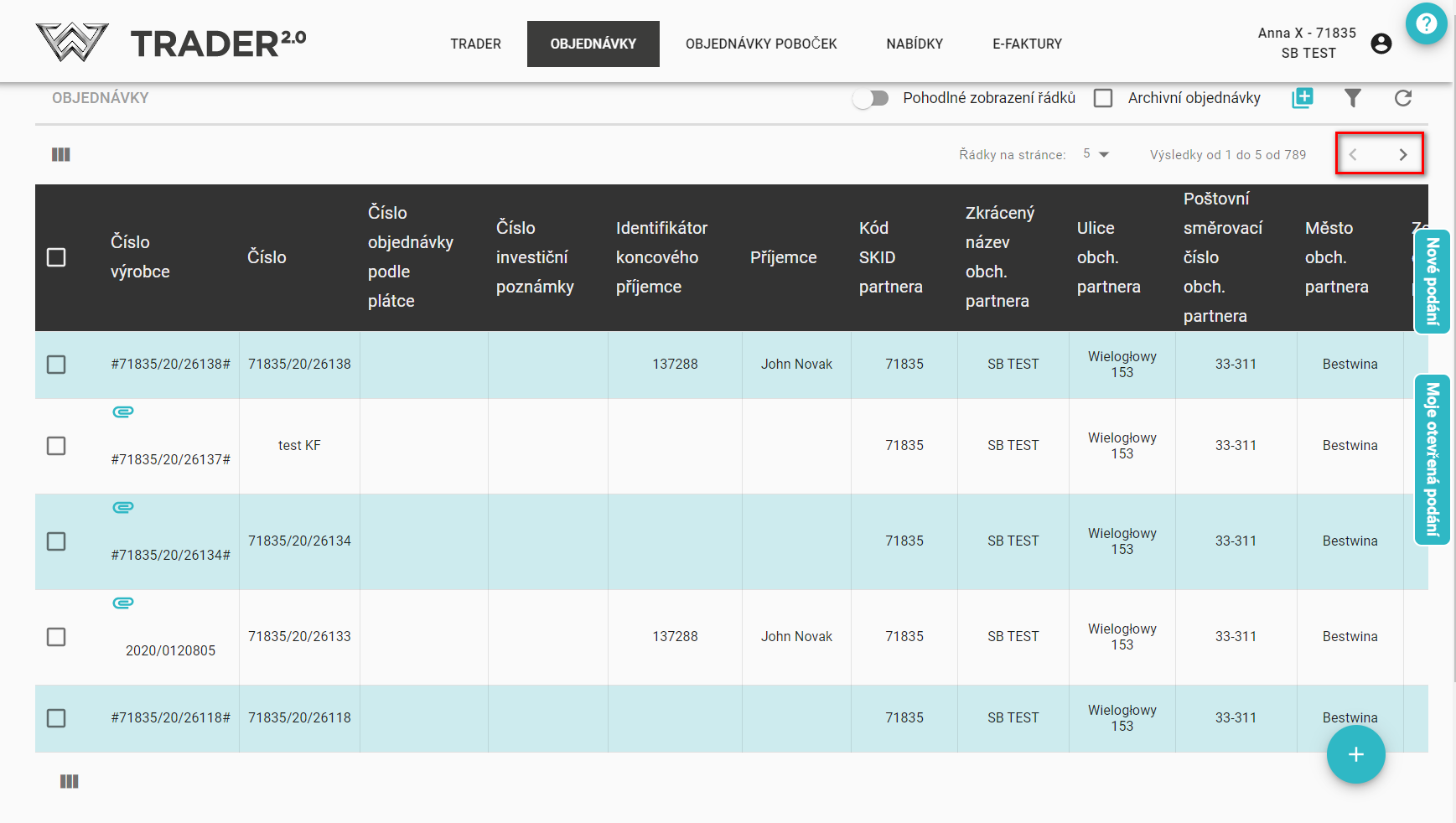 U jednotlivých položek, např. seznamu objednávek, se zobrazí určitý počet záznamů.