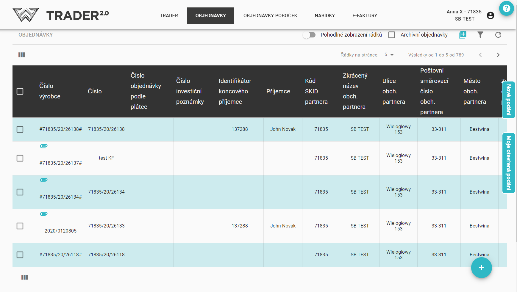 - seznamy objednávek,