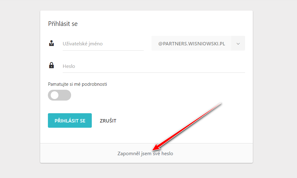 Pokud uživatel zapomněl své přihlašovací heslo, může použít možnost připomenutí hesla kliknutím na možnost Zapomněl jsem heslo