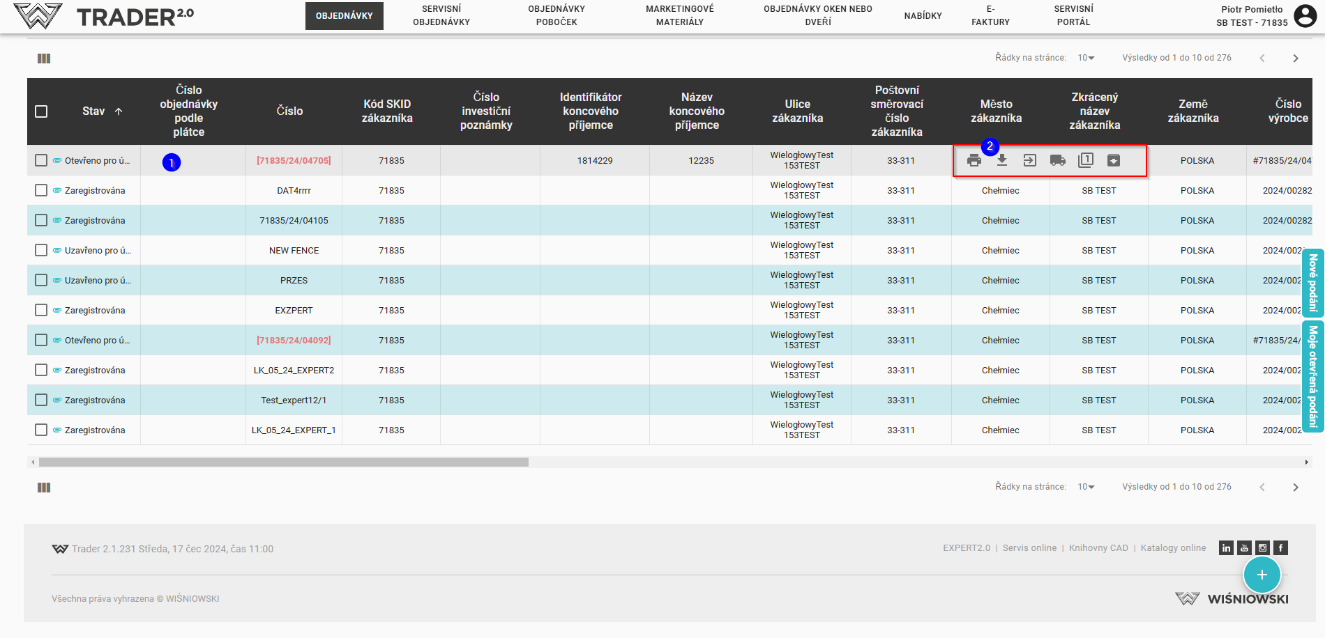Přejeďte myší na objednávku, kterou chcete vytisknout (1). Zobrazí se ikona (2).