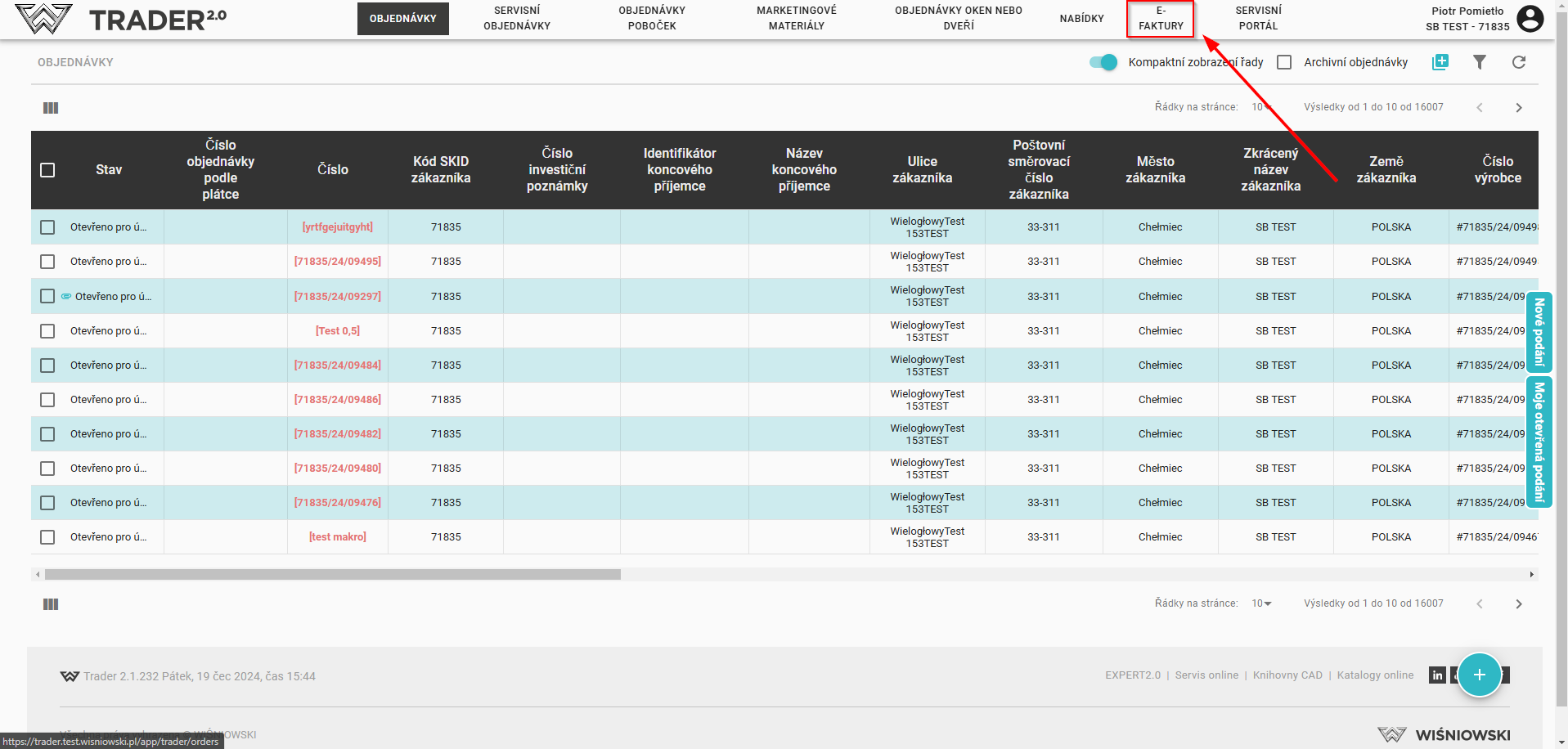 Na záložce E-faktury si můžete prohlédnout vystavené faktury.