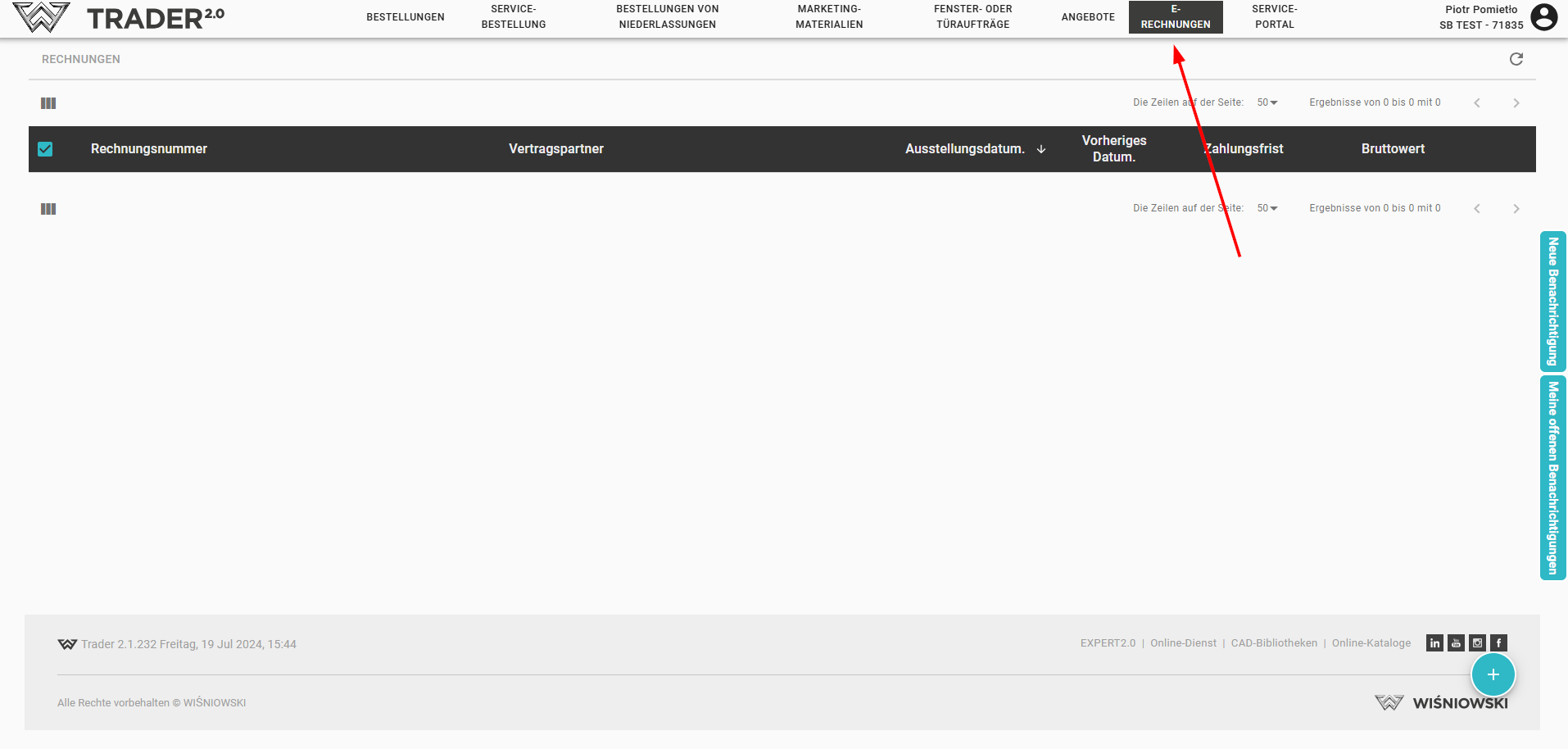 In der Registerkarte E-Rechnungen können Sie die ausgestellten Rechnungen einsehen.