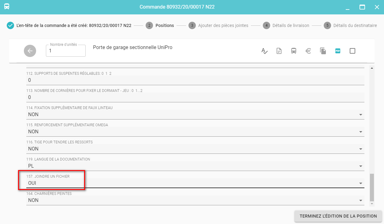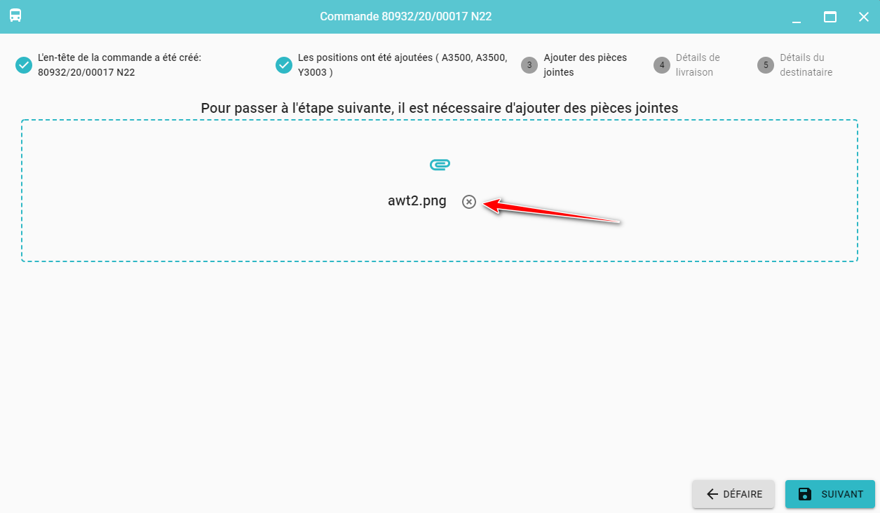 Une pièce jointe peut être ajoutée à chaque commande. Si la propriété d'un produit JOINDRE UN FICHIER a la valeur OUI dl'ajout d'une pièce jointe est obligatoire et cette étape ne peut être omise lors de la saisie de la commande.