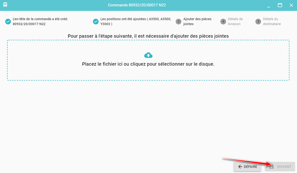 Le bouton Suivant sera désactivé jusqu'à ce que la pièce jointe soit sélectionnée !