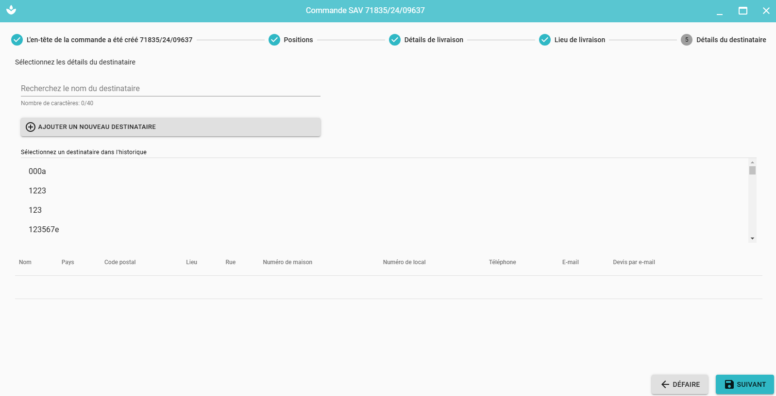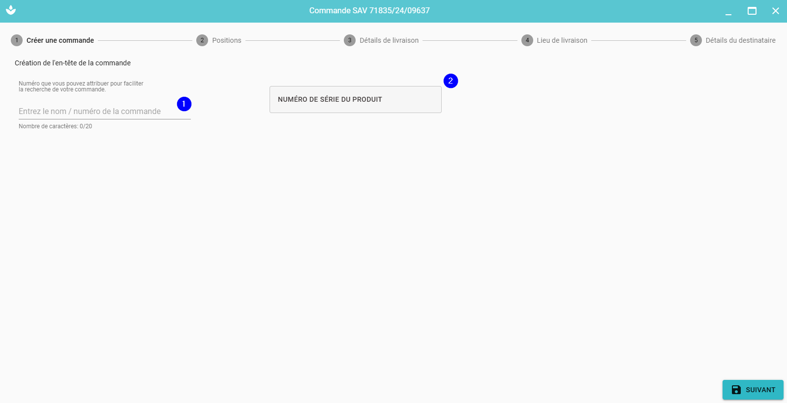 Après avoir cliqué sur « Suivant », la commande SAV est sauvegardée et sera disponible dans la liste des commandes.