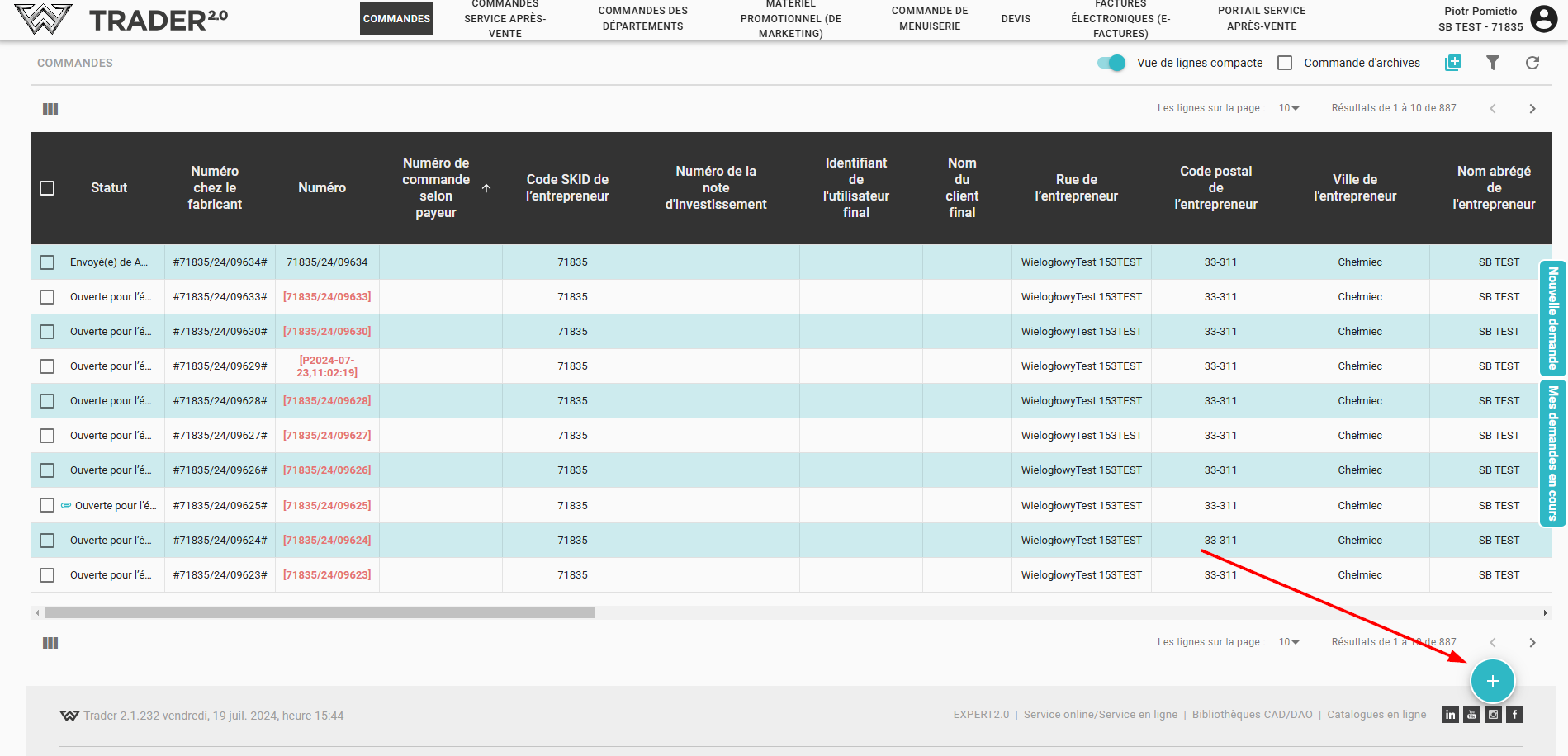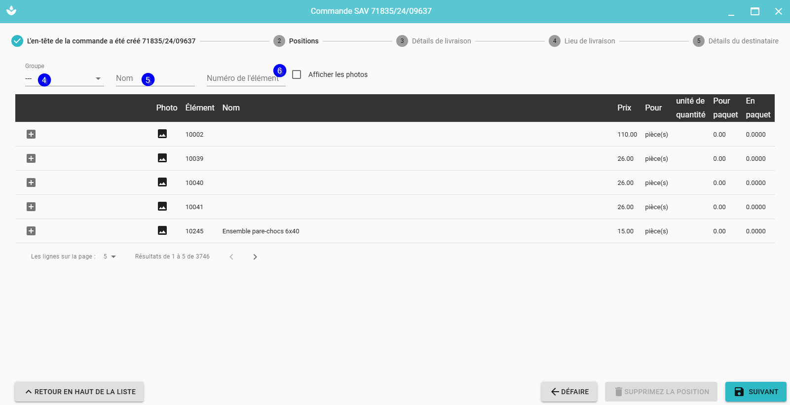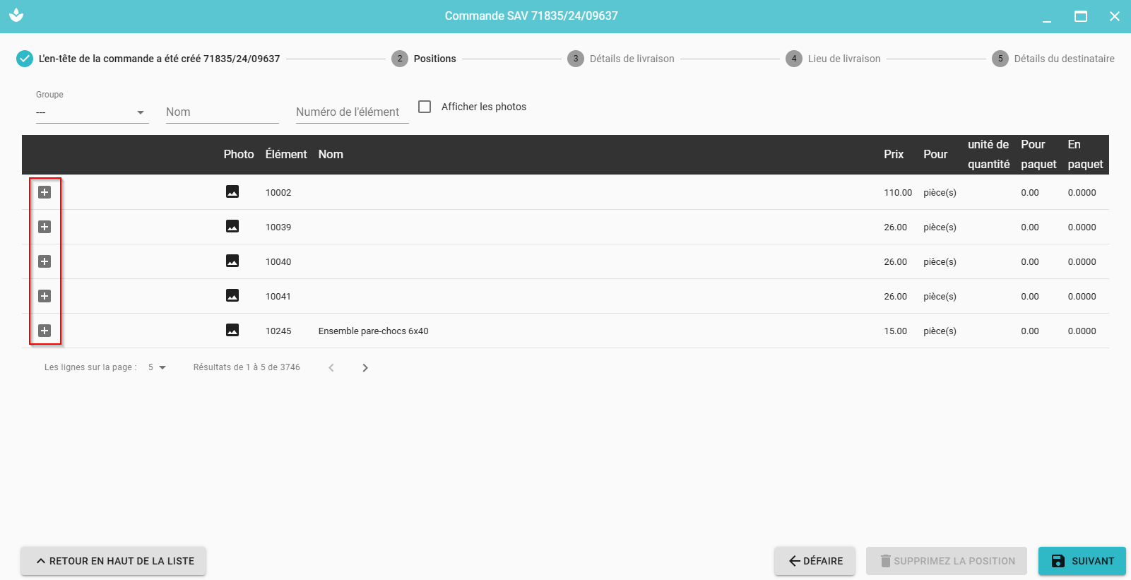 On ajoute des positions à la commande en cliquant sur le bouton "plus" à gauche de chaque position..