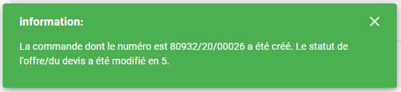 Si la commande est correctement générée, un message avec le numéro de commande va apparaître.