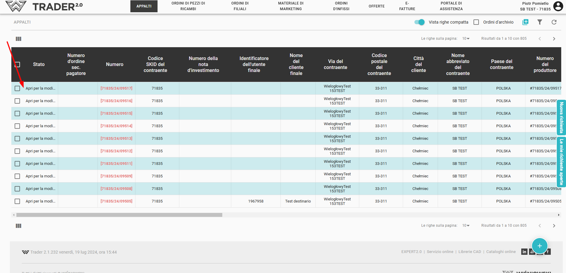 Dopo aver creato un nuovo ordine, puoi trovarlo nell'elenco degli ordini. I dettagli dell'ordine precedentemente inserito, possono essere visualizzati cliccando sulla riga corrispondente nell'elenco degli ordini.