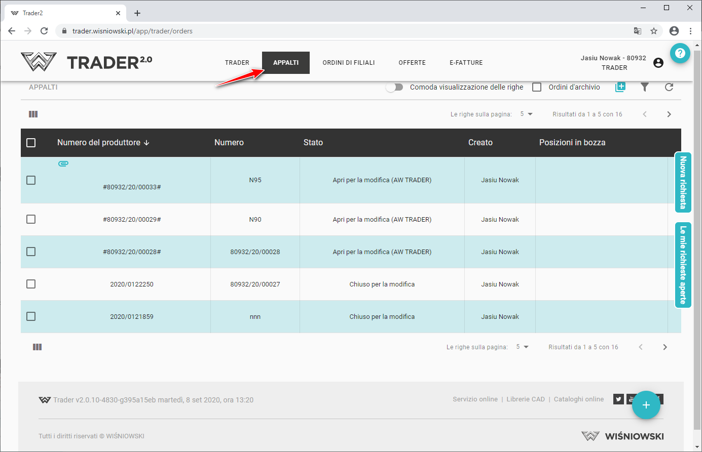 Passa il mouse sull'ordine che desideri stampare (1). Apparirà, tra le altre, l'icona (2).
