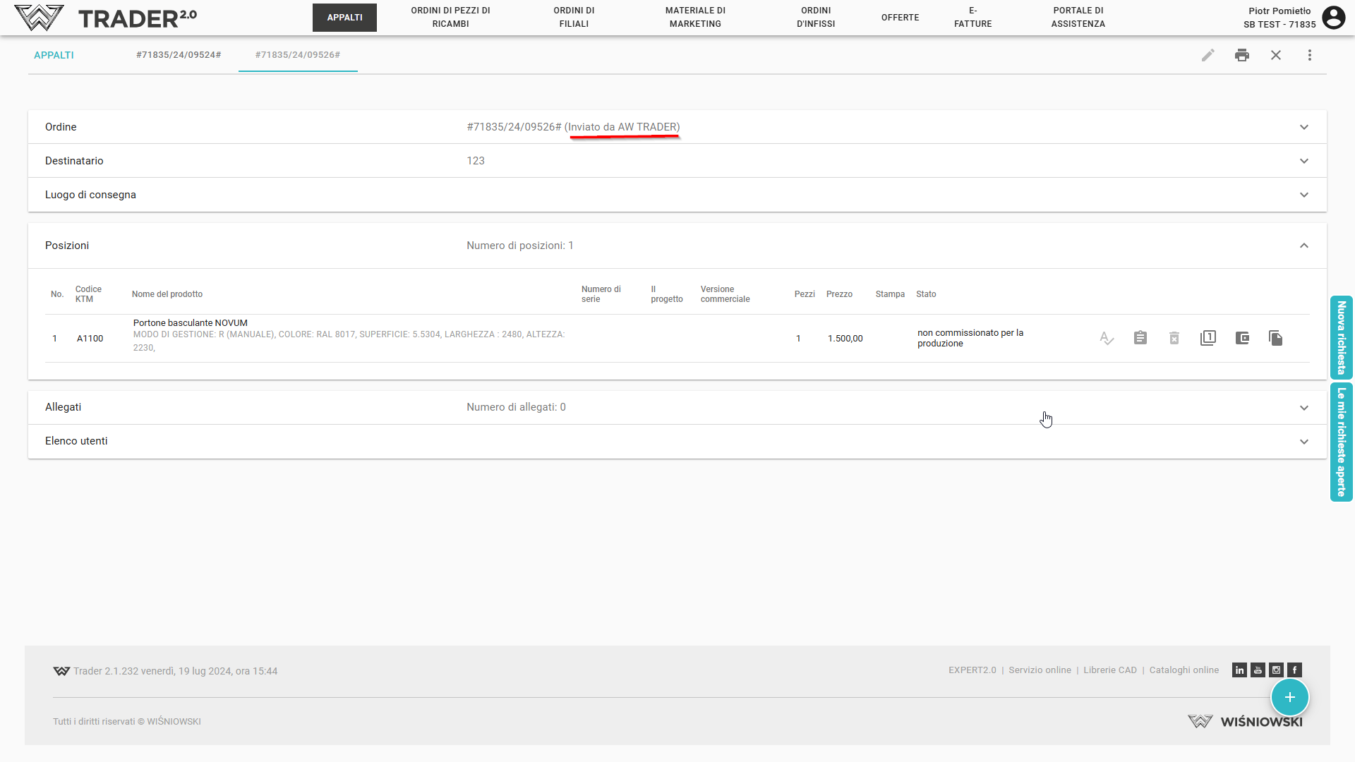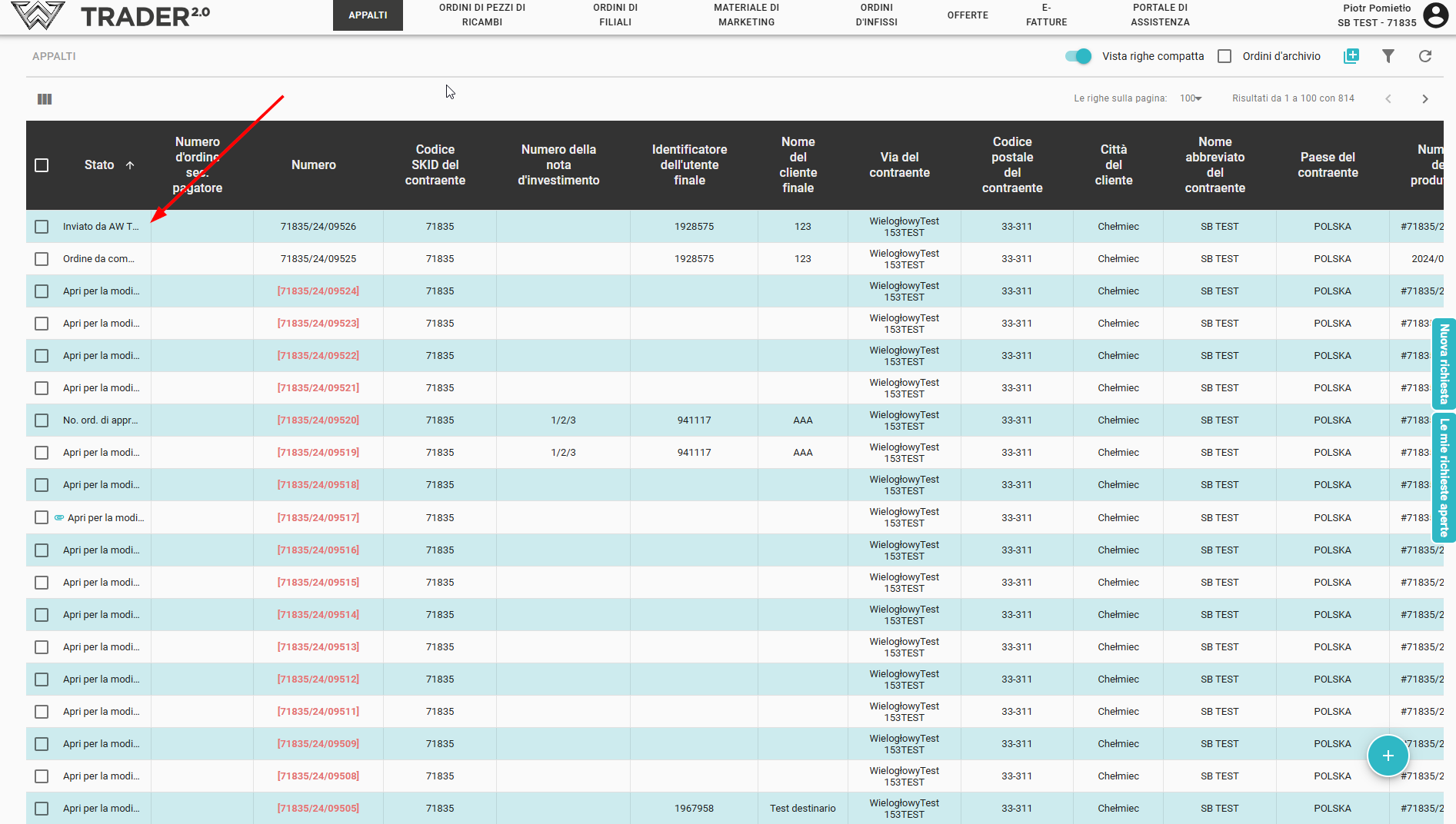 Dopo aver aggiornato l'elenco degli ordini, lo stato dell'ordine sarà cambiato in Inviato da AW TRADER.