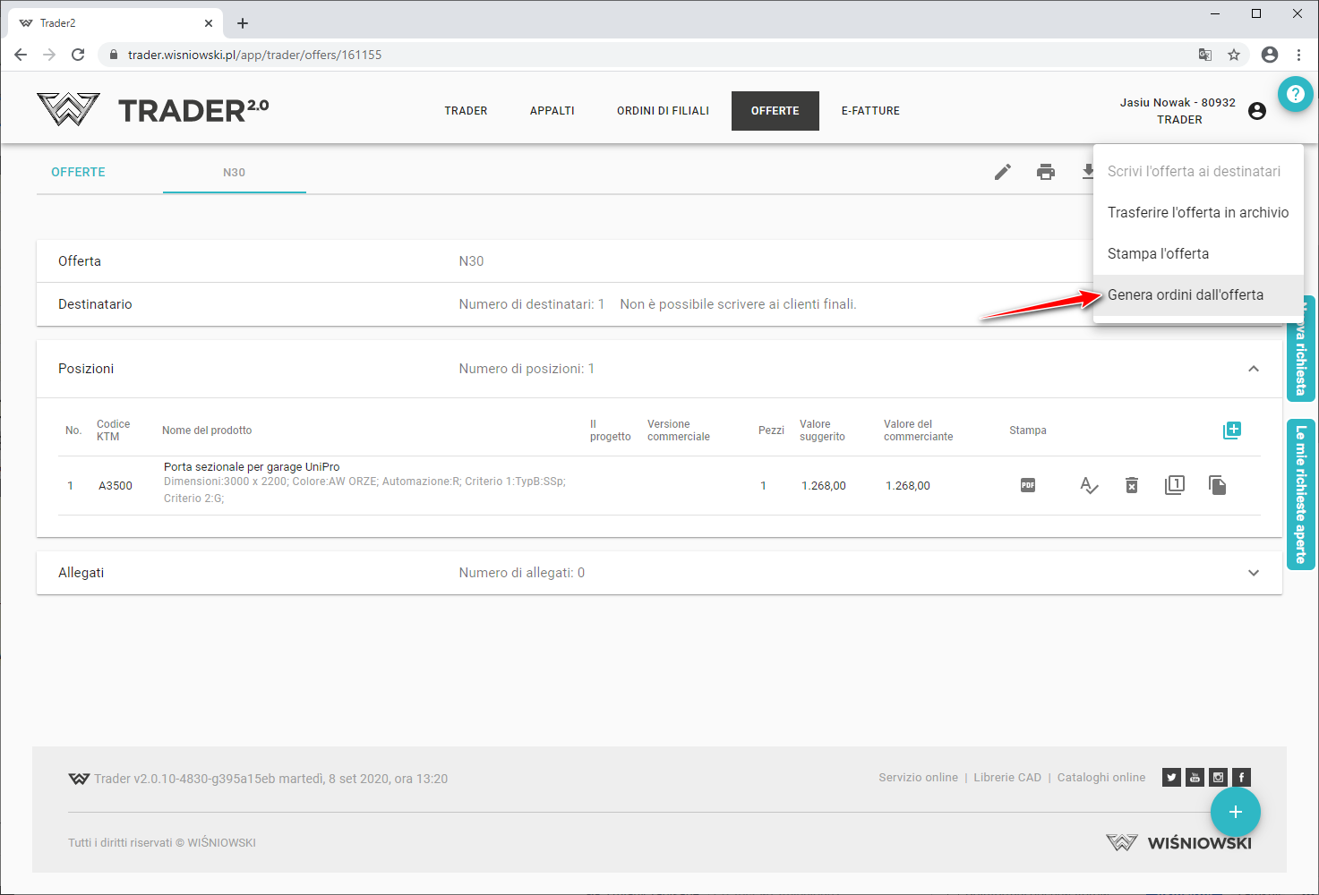 Successivamente, seleziona l'opzione Genera ordini dall'offerta