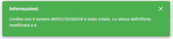 Se l'ordine viene generato correttamente, apparirà un messaggio con il numero dell'ordine.