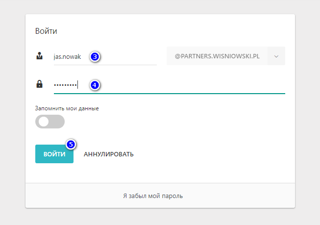 Введите данные для входа пользователя (3), пароль (4), и нажмите Войти (5)