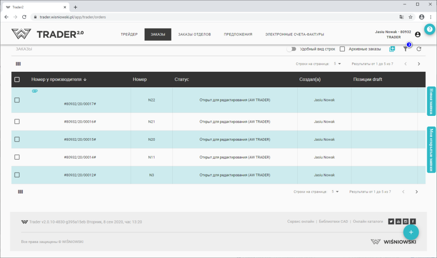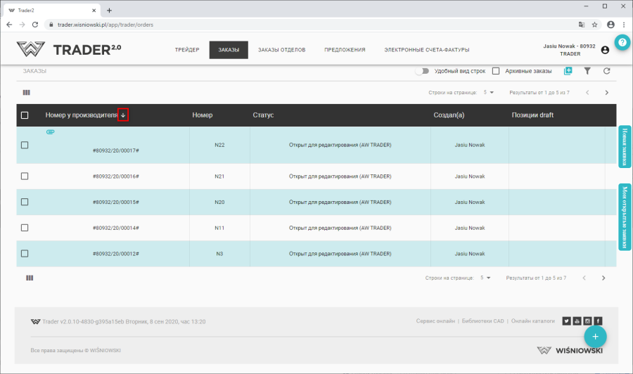 Чтобы отфильтровать несколько заказов по определенным параметрам, нажмите значок в правом верхнем углу списка заказов (3).