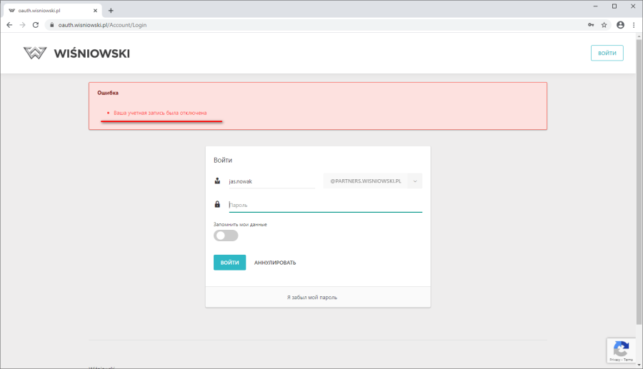Заблокированный пользователь после входа в систему получит сообщение