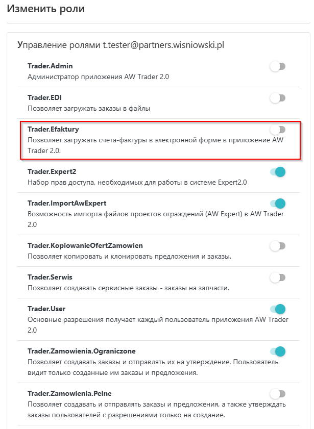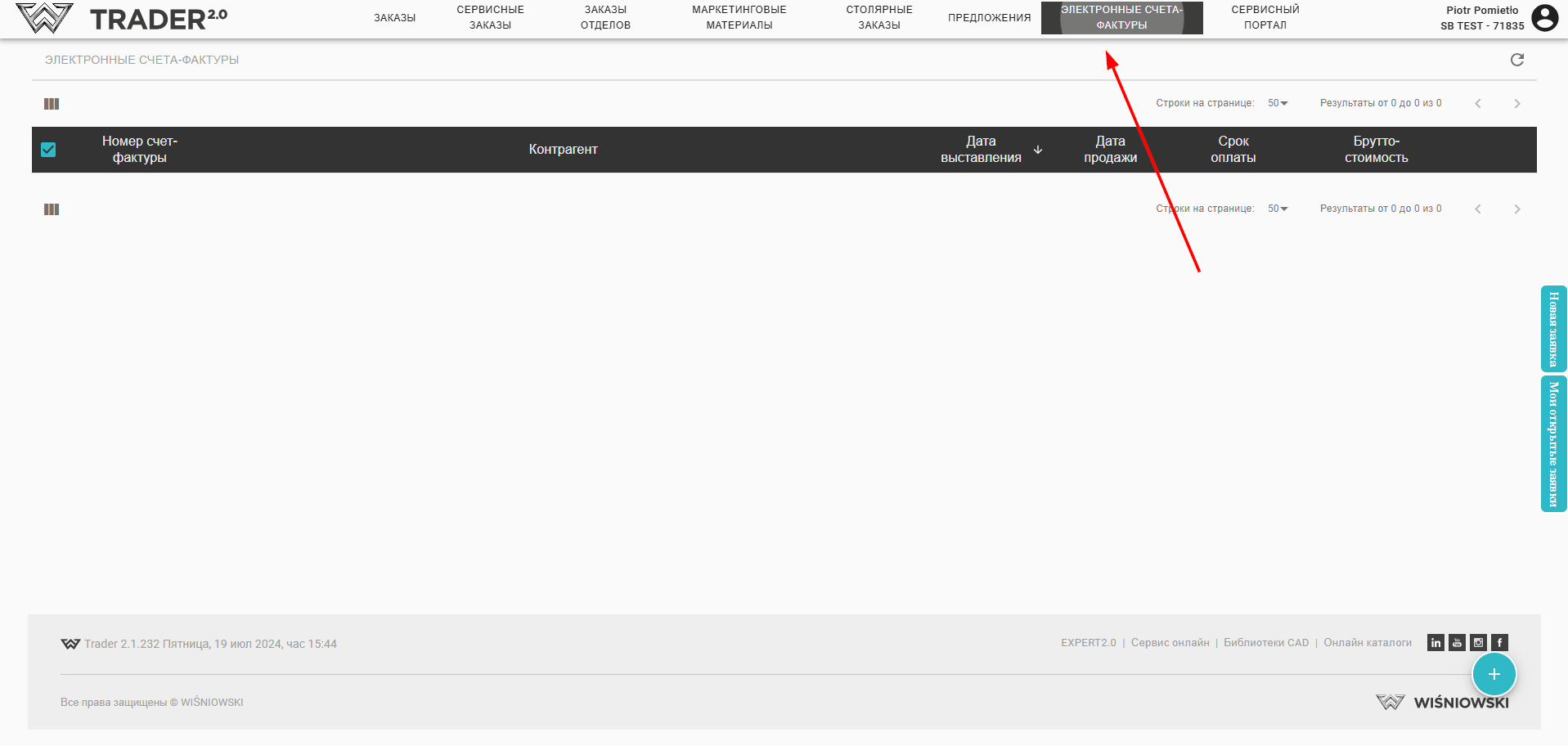 Доступ к этой вкладке ограничен. Если у Вас есть права администратора на управление вашей компанией, Вы можете назначить роль Трейдер.Эсчета-фактуры выбранным сотрудникам в панели администратора.