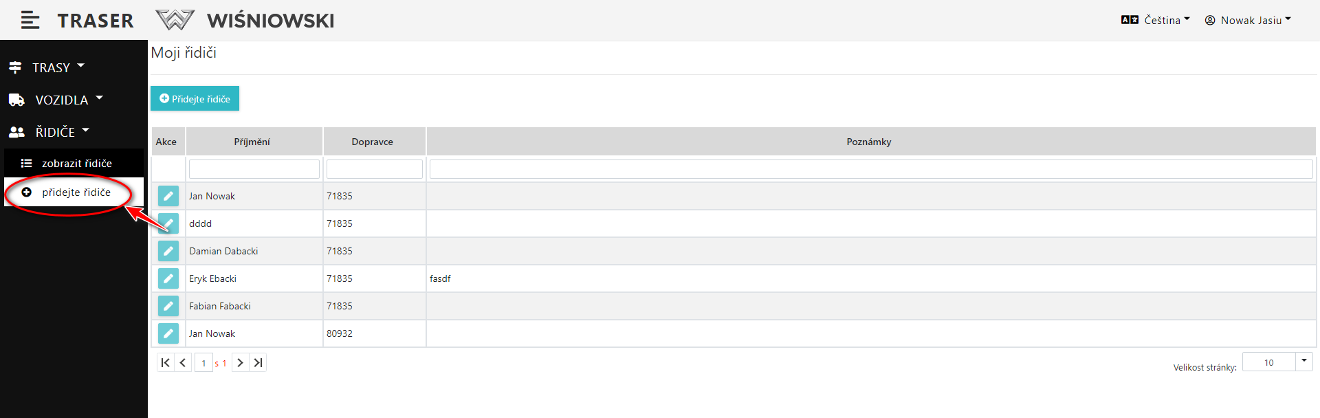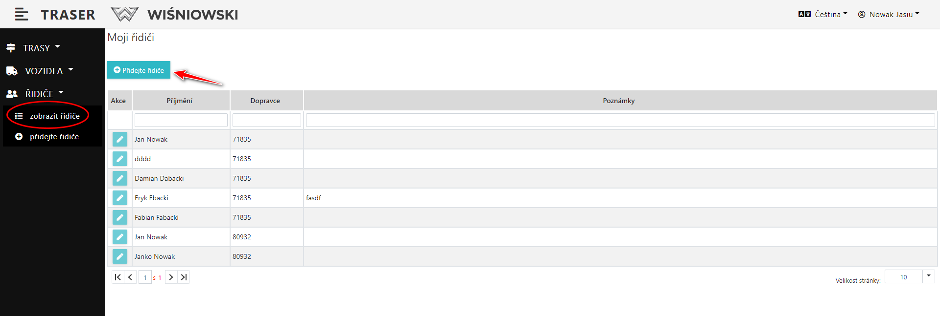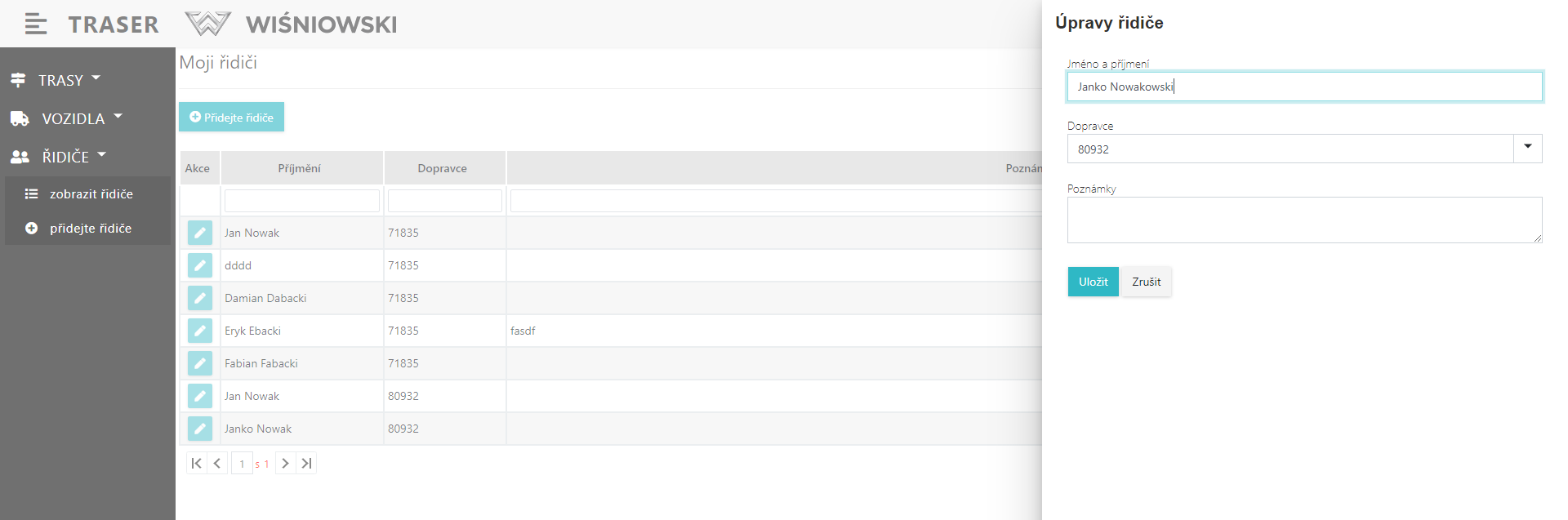 3. Pokud je Řidič bude vytvořen správně, zobrazí se v seznamu Řidičů (Obr. 3.).