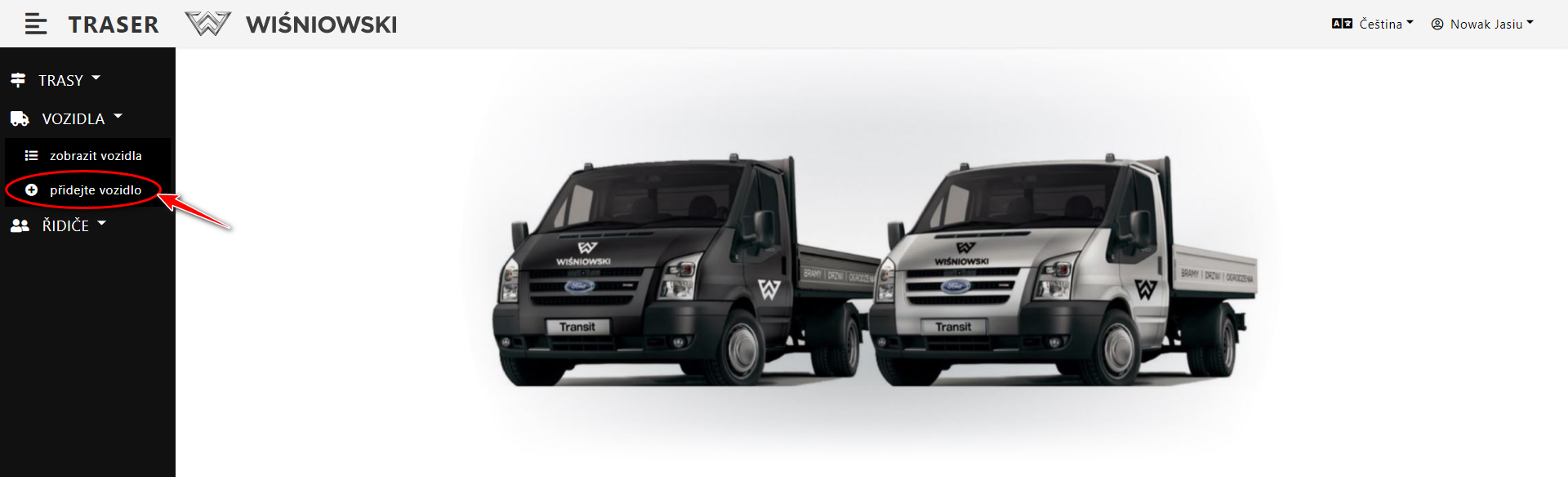 Obr. 1. Přidání vozidla pomocí bočního menu.