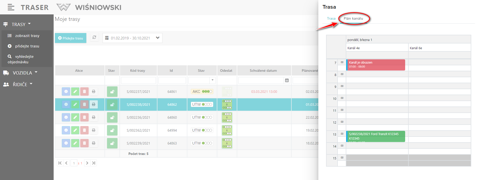 Pokud chcete vidět kapacitu Nakládací brány v grafické podobě, vyberte kartu: Časový plán kanálů(Obr. 3).