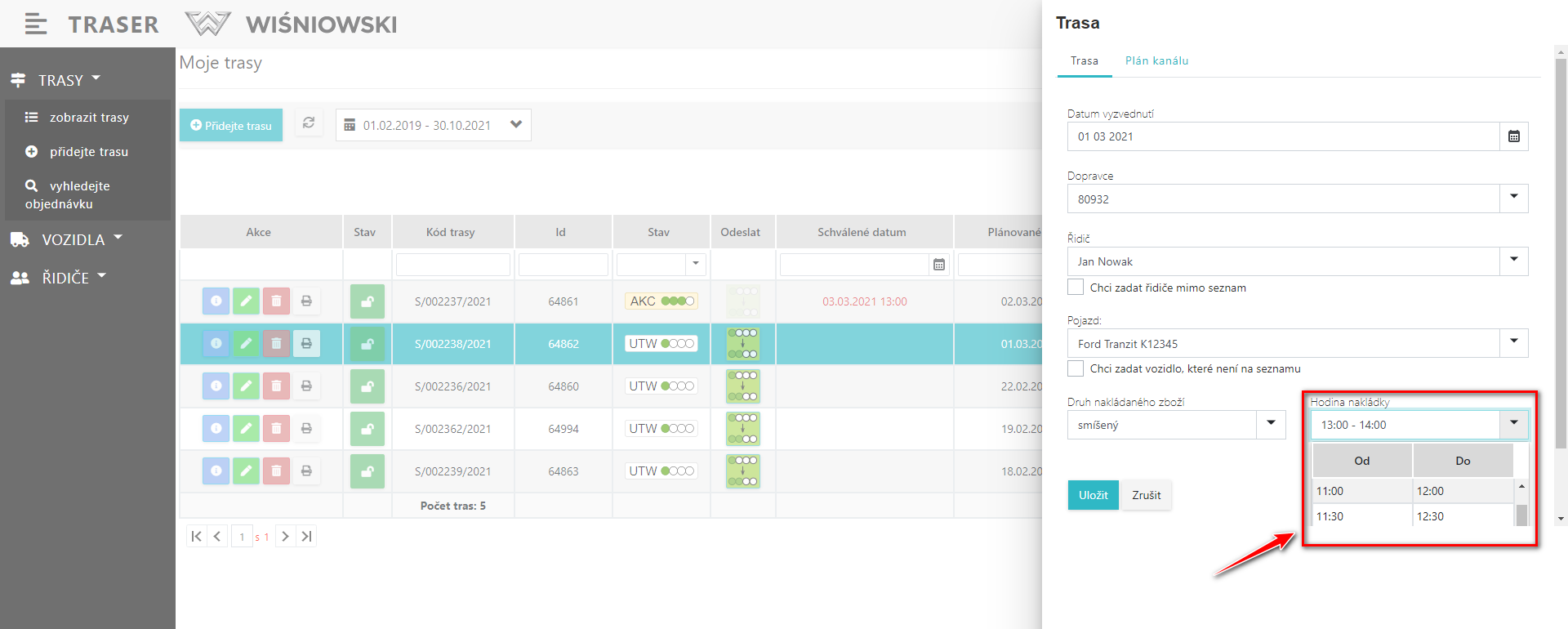 Rys. 2. Výběr času příjezdu. .