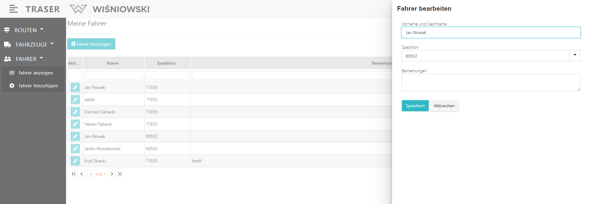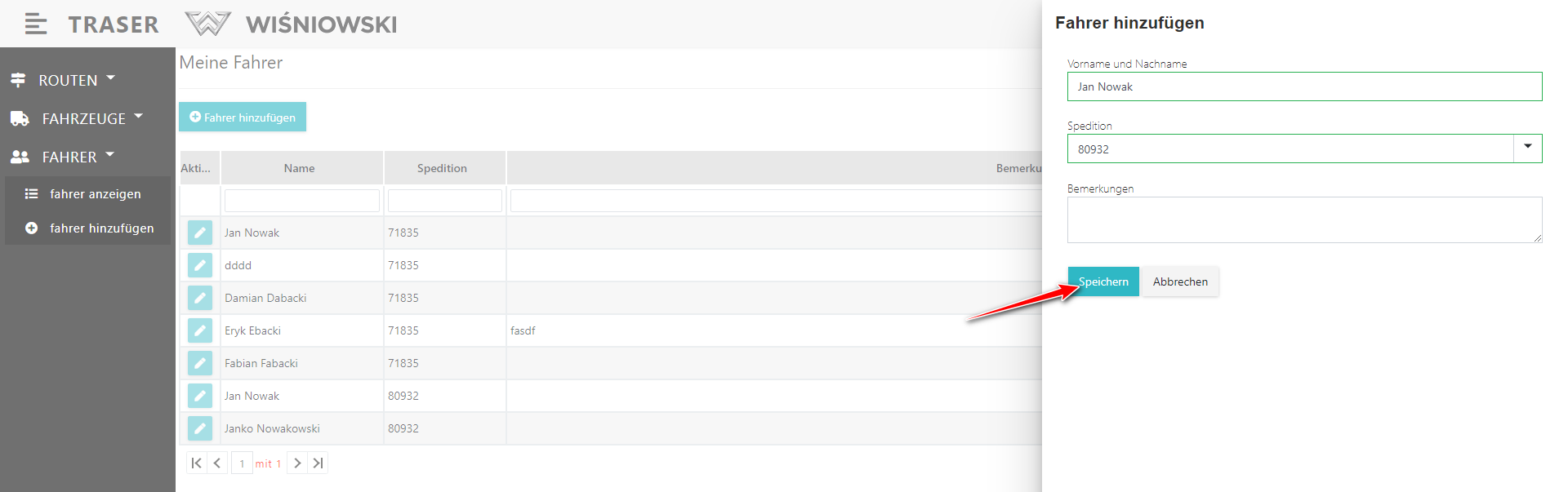 Abb. 7. Fahrer speichern nach der Bearbeitung.