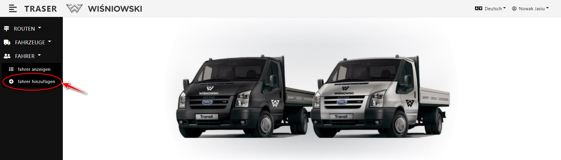 Abb. 1. Hinzufügen eines Fahrers über das Seitenmenü.