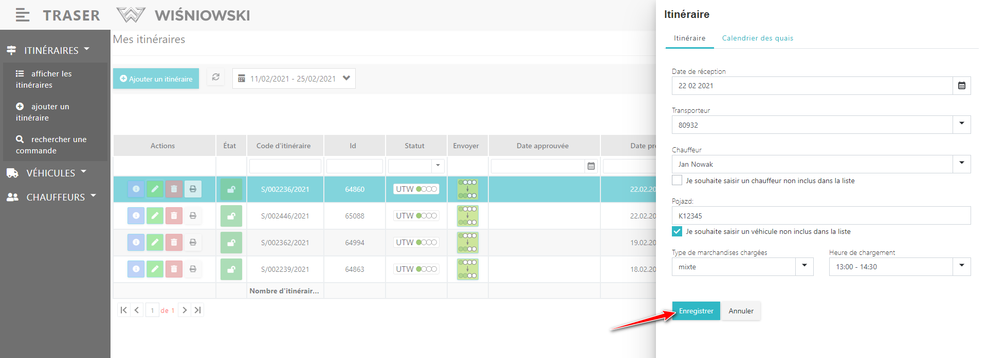 2. Dans le volet latéral, modifiez l'itinéraire et cliquez sur "ENREGISTRER" (Fig. 2.).