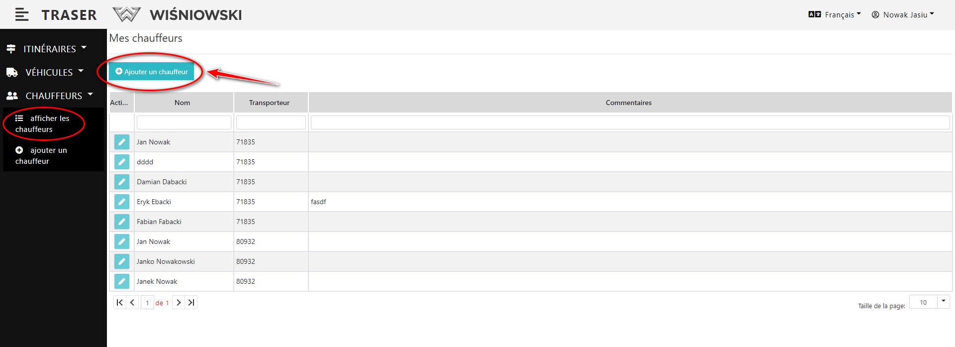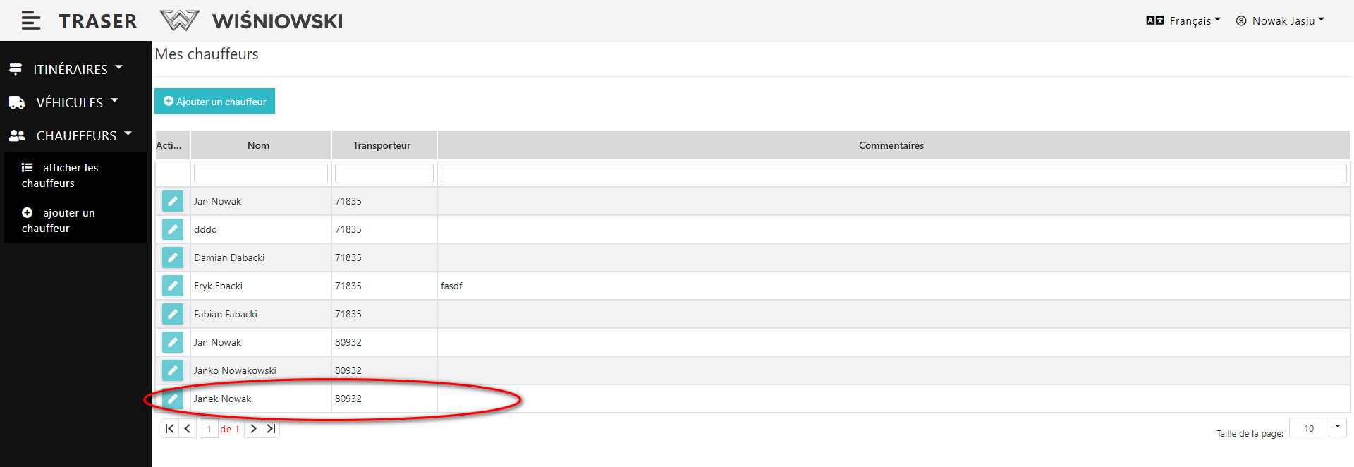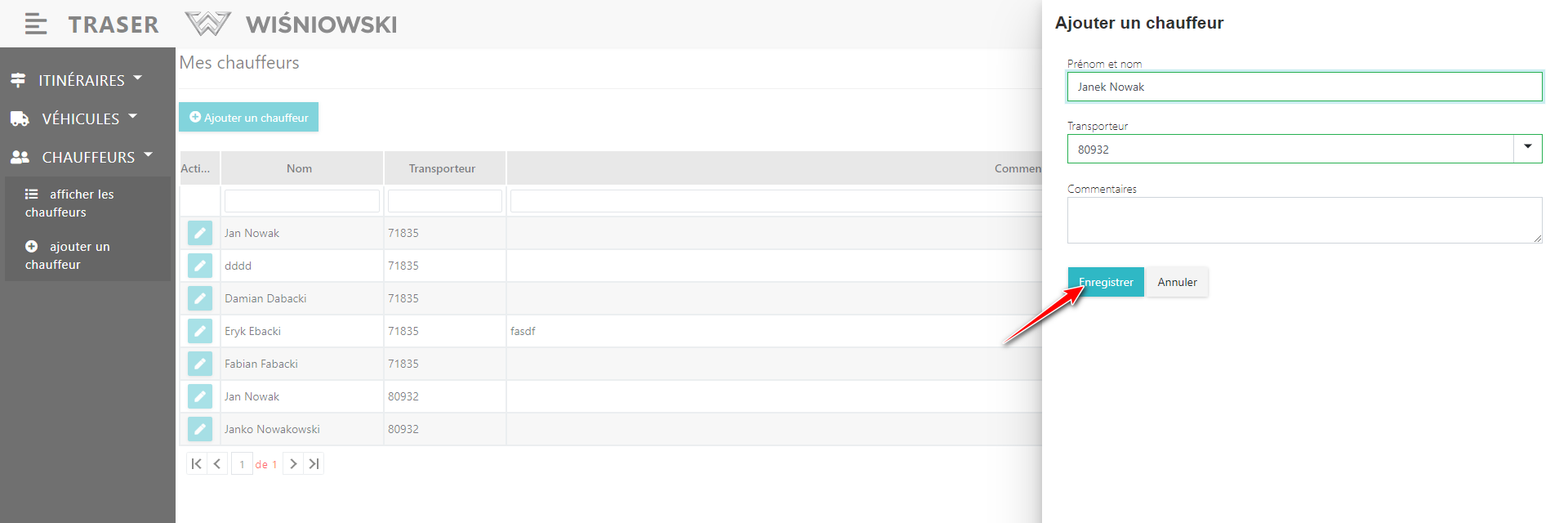 3. Si le chauffeur est créé correctement, il va apparaître dans la liste des chauffeurs (Fig. 3.).