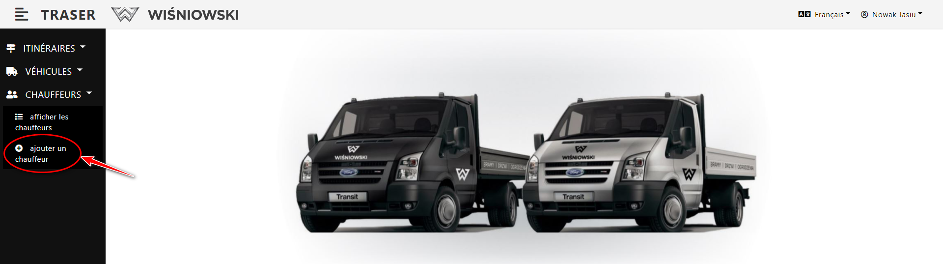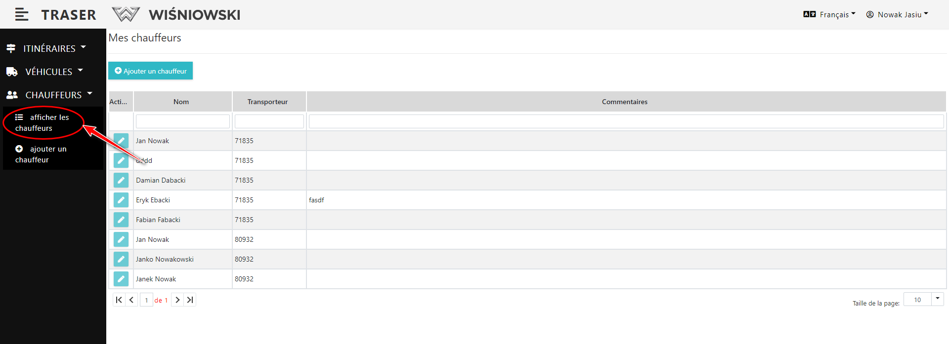1. Sélectionnez dans le menu latéral : Chauffeurs → afficher les chauffeurs. (Fig. 5.). La liste des chauffeurs doit apparaître.