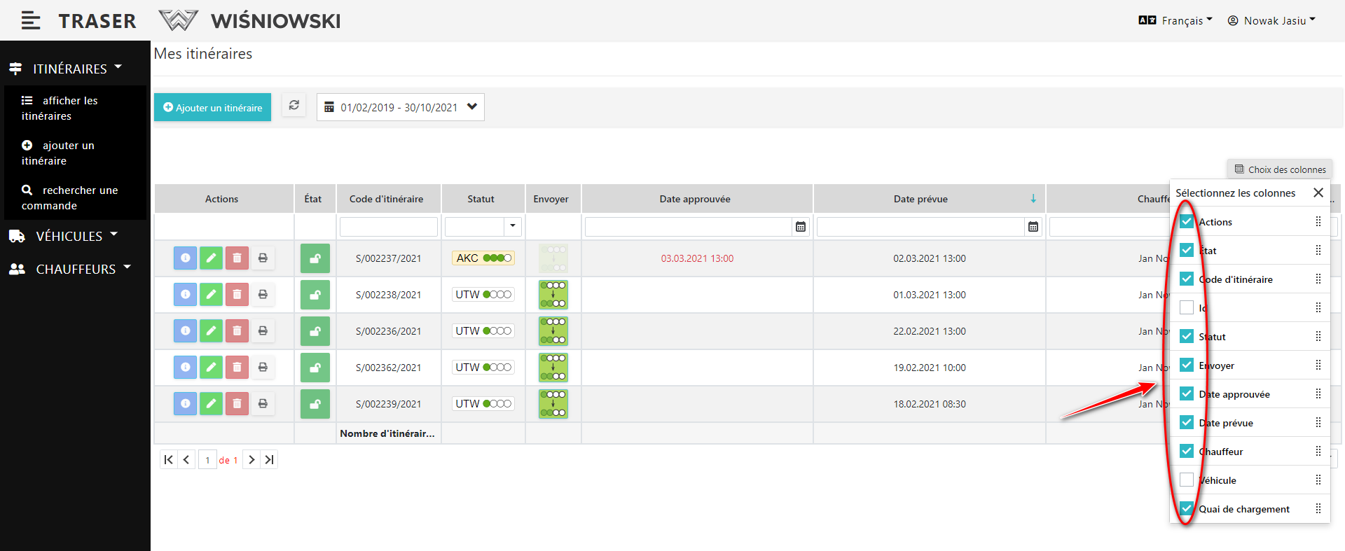 1. Affichez n'importe quel tableau. Cliquez sur le bouton "CHOIX DES COLONNES". Ensuite, sélectionnez/désélectionnez les colonnes que vous voulez afficher (Fig. 3.).