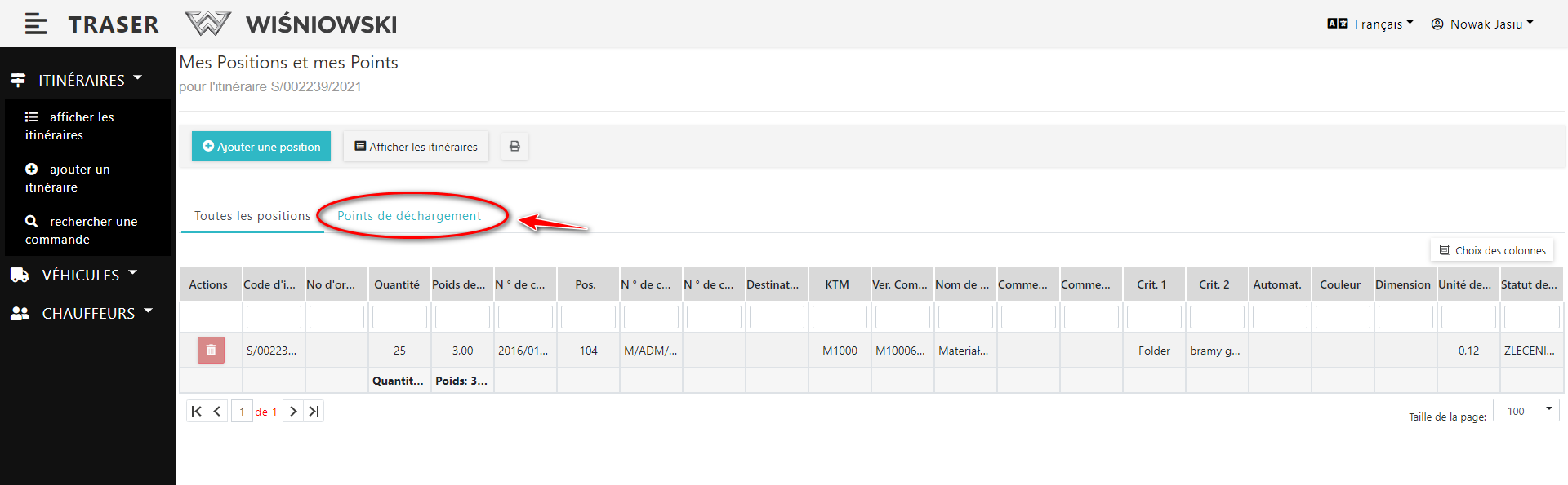 MODIFICATION DE L'ORDRE DES POINTS DE DÉCHARGEMENT