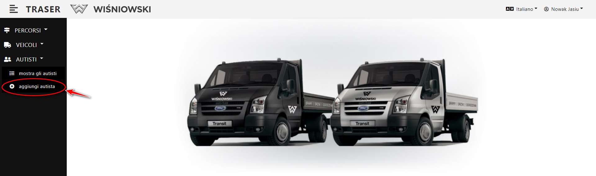Dis. 1. Aggiungere un Autista usando il menu laterale.