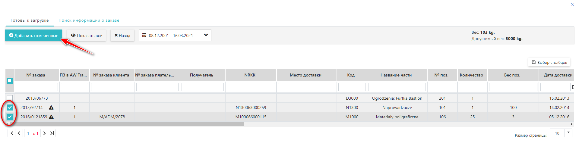 3. Выберите из списка Позиции, которые вы хотите добавить, отметив их в первом столбце. Затем нажмите «Добавить отмеченные» (Рис. 3.).