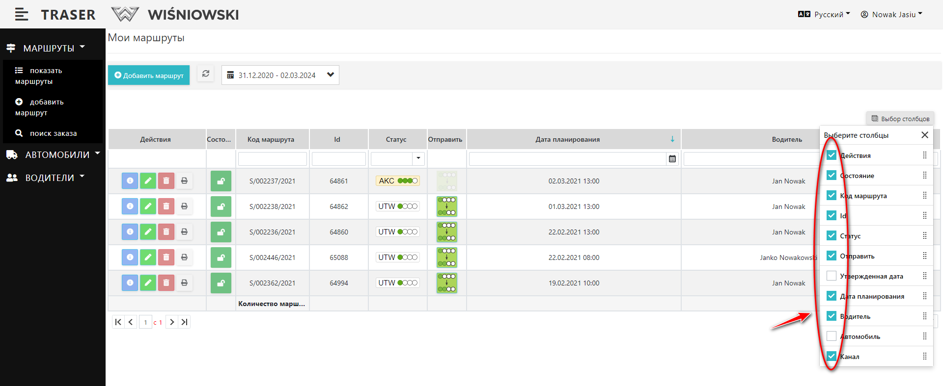 1. Откройте любую таблицу. Нажмите кнопку «ВЫБОР СТОЛБЦОВ», затем переместите выбранный столбец в любое место.