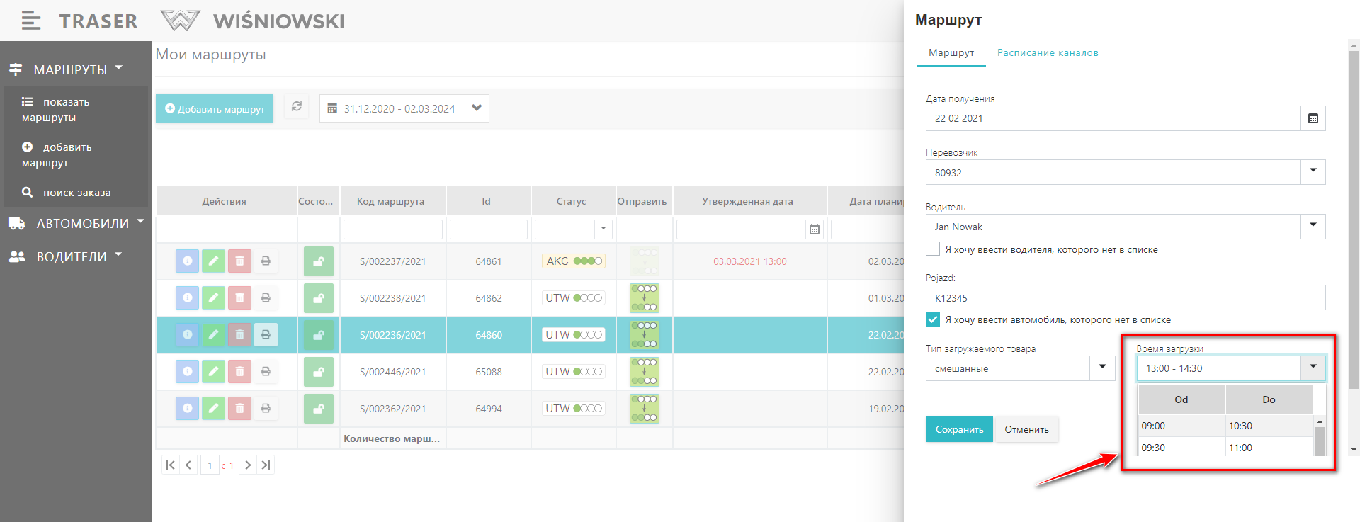После выбора типа загружаемого товара (а перед этим даты загрузки и автомобиля), Traser проверяет доступность соответствующего Погрузочного дока.